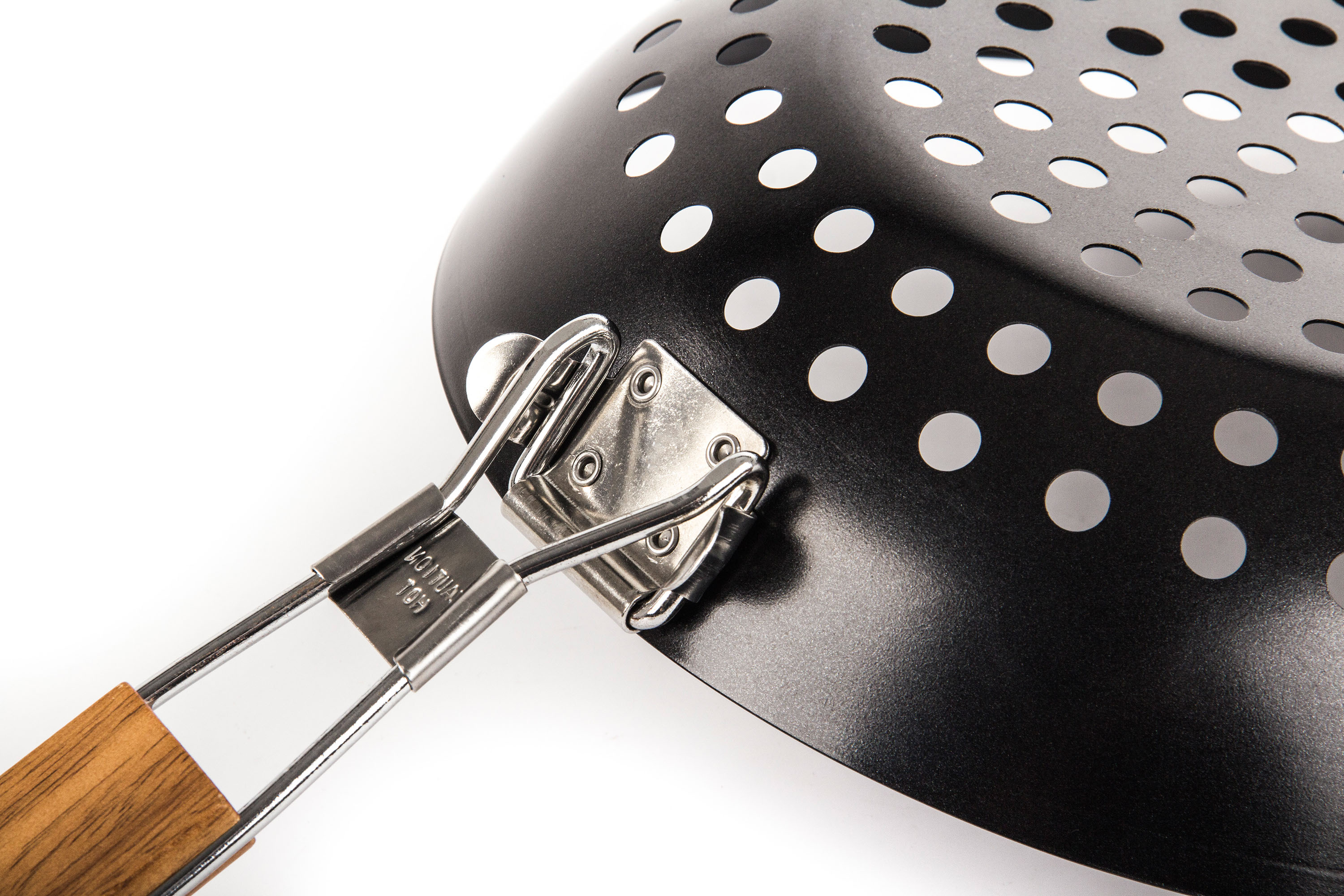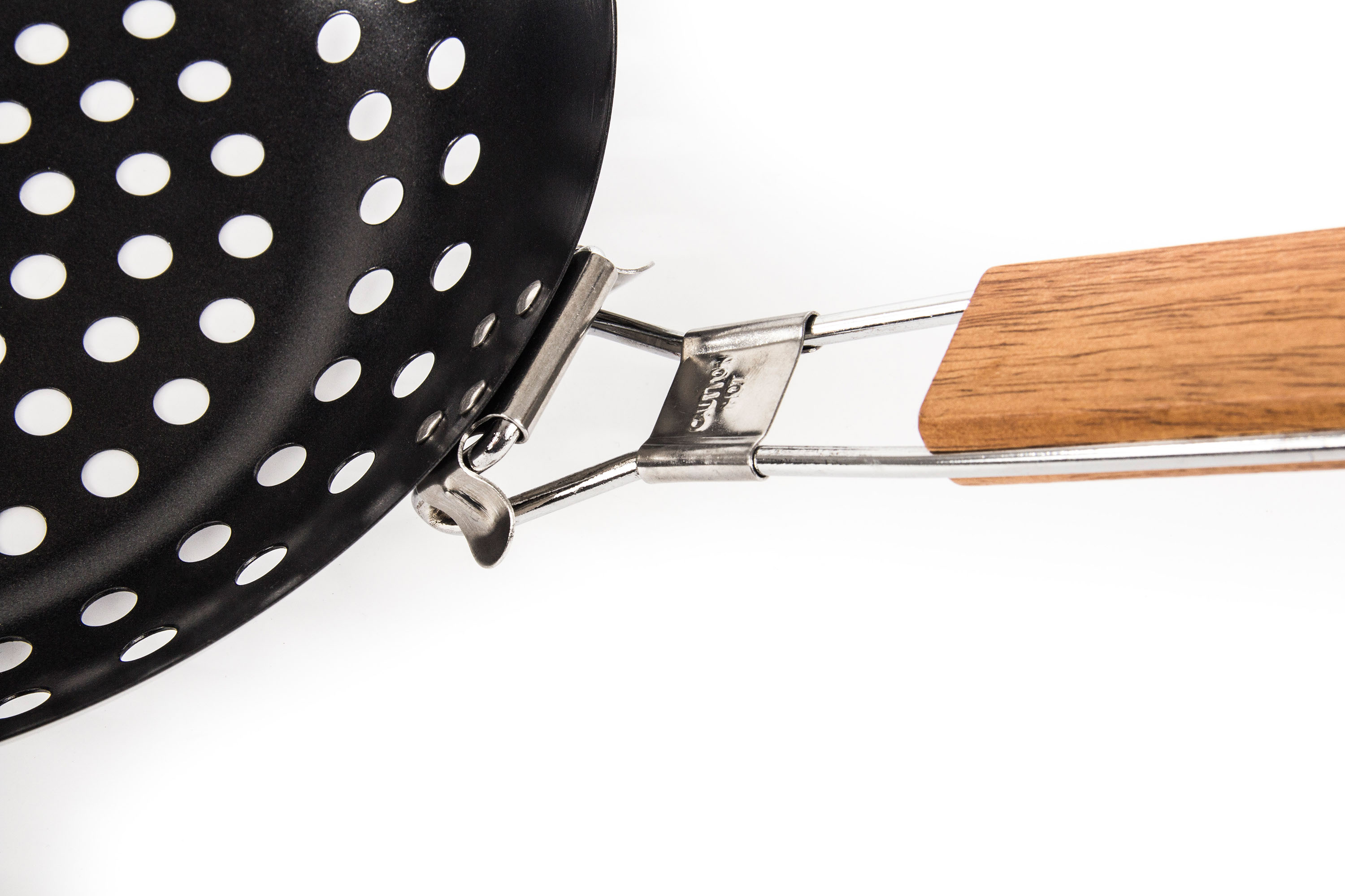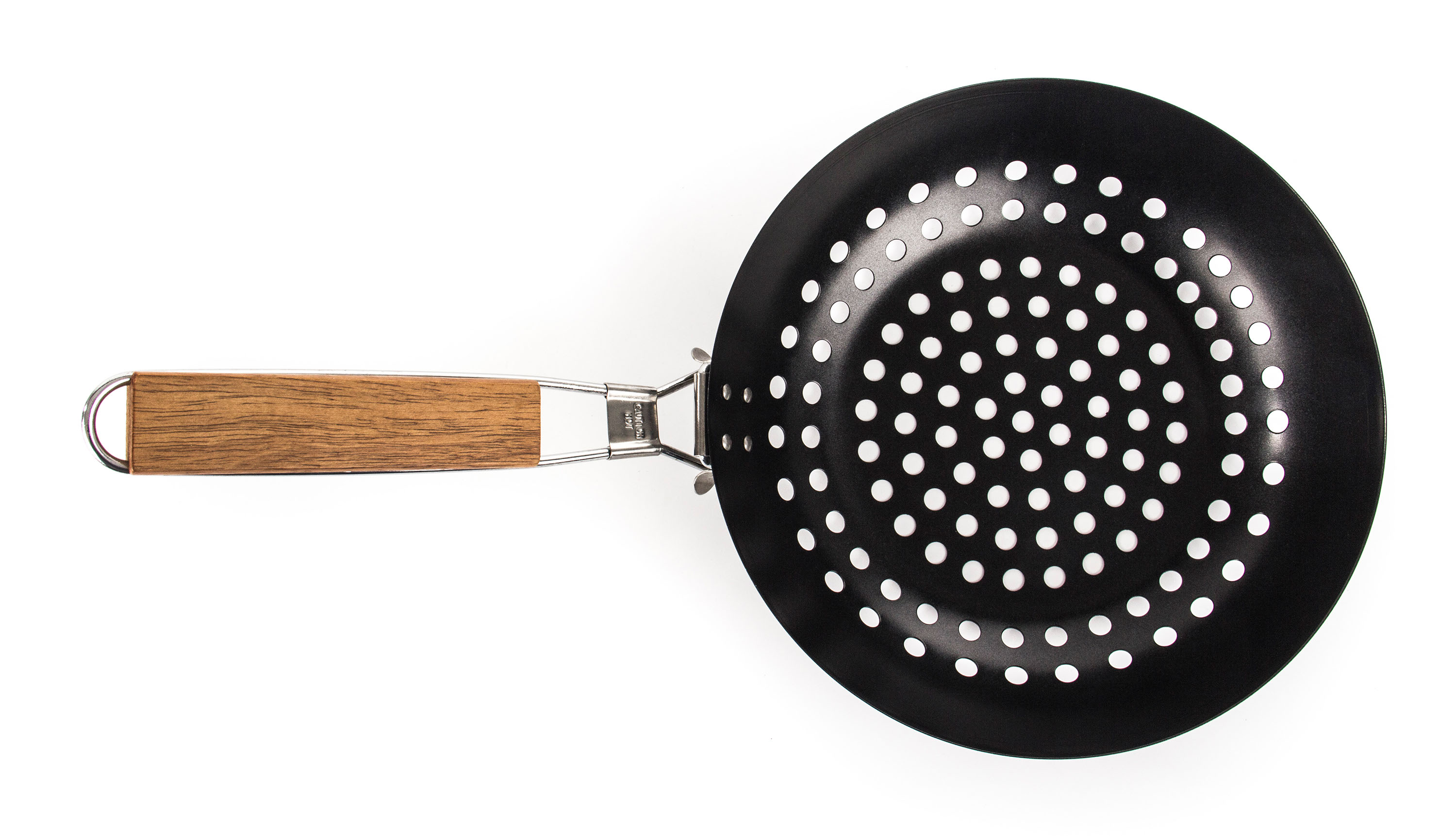 Pořiďte si nepřilnavou grilovací pánev G21 o průměru 28 cm pro grilování na plynových grilech i na grilech na dřevěné uhlí. Kulatá grilovací pánev má po celém svém povrchu otvory o průměru 10 mm. Proto se zelenina i maso grilují rovnoměrně, ale zároveň nepropadávají do ohně, i když jsou rozkrájené na menší kousky.