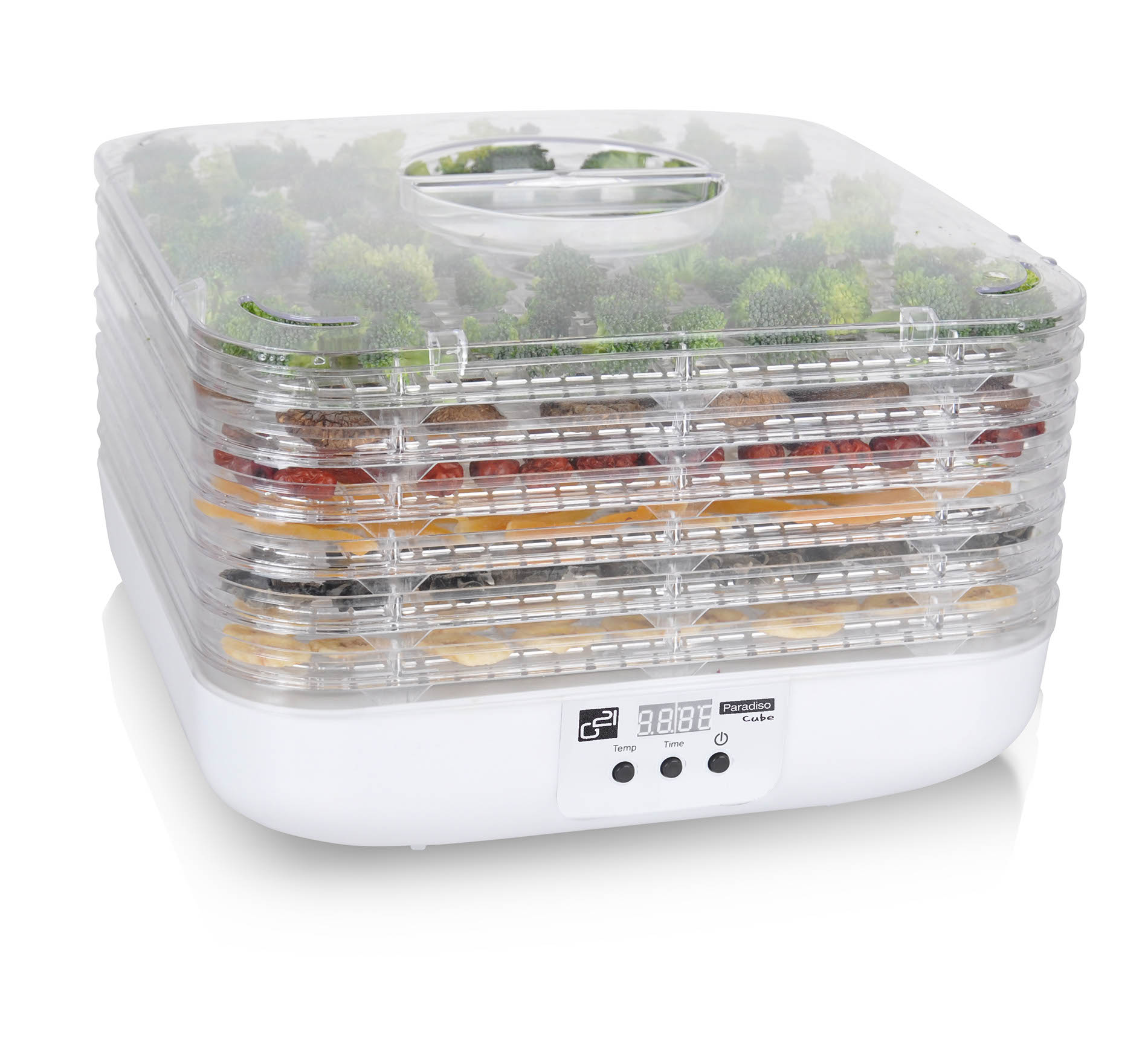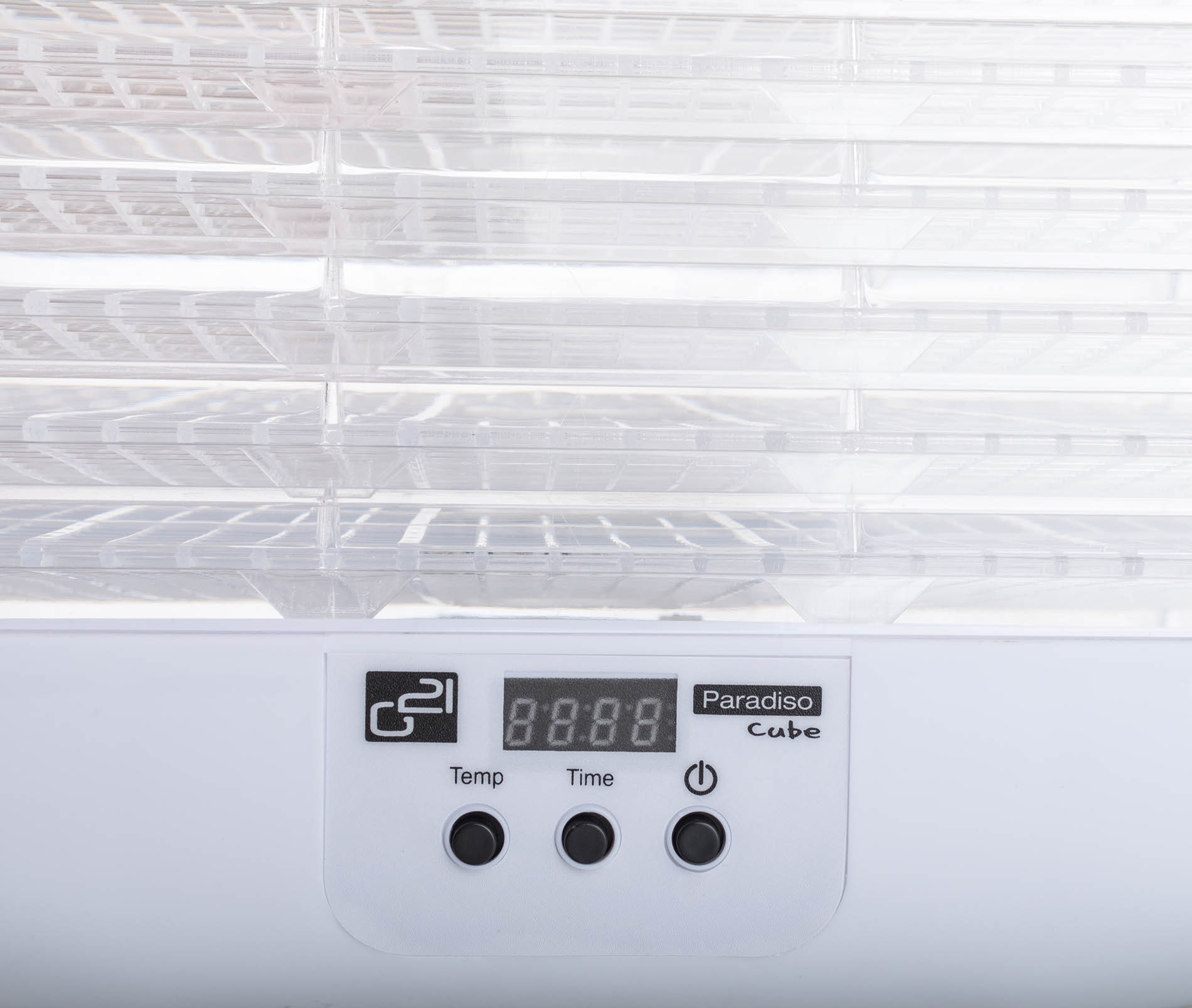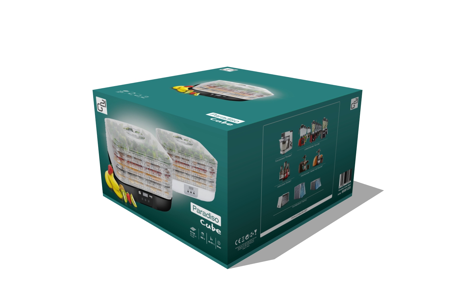Malá, kompaktní, účelně řešená a uživatelsky přívětivá. S digitálním nastavením teploty, ukazatelem času a jednotlačítkovým ovládáním. A s názvem, který nevznikl náhodou. Seznamte se se sušičkou ovoce G21 Paradiso Cube a připravte se na nový ráj ve své kuchyni.