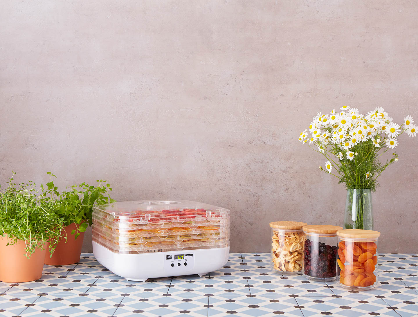 Svými rozměry 34 cm x 34 cm a výškou 21 cm se řadí k těm menším na trhu. Výkonem 350 W je zase jednou z nejlepších ve své třídě. Snadno ji umístíte i na malou kuchyňskou linku nebo na poličku na chatě. Sušit tak můžete hned, když se vrátíte z lesa s košíkem hub nebo se zahrady s čerstvě natrhaným ovocem.