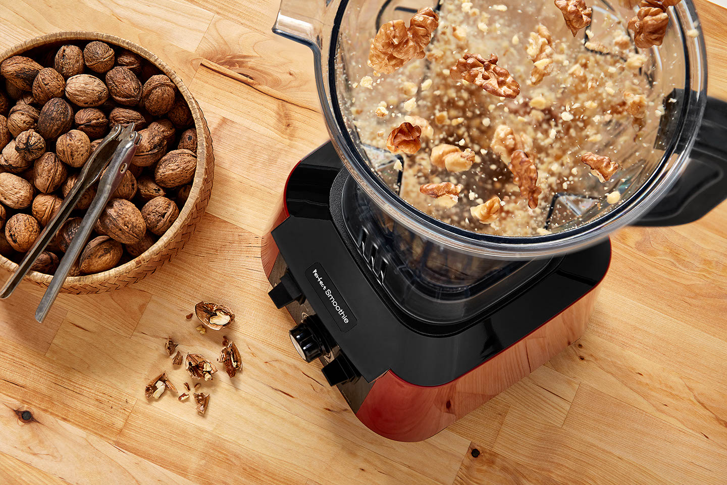 Skutečně. Nádobu bez jakéhokoliv šroubování nebo složitého usazování jednoduše položíte na tělo mixéru, vložíte do ní suroviny a během mixování je můžete přitlačovat k nožům ergonomicky tvarovaným šťouchadlem. Ovládací prvky jsou jen tři a ovládání je tak velmi jednoduché. Po skončení mixování nádobu jen vypláchněte, dolijte vodu, několikrát stiskněte tlačítko PULSE a zase vypláchněte. Ano, takhle snadno vyčistíte mixér i od tuhých směsí. Nože pak už stačí jen jemně otřít houbou či hadříkem.