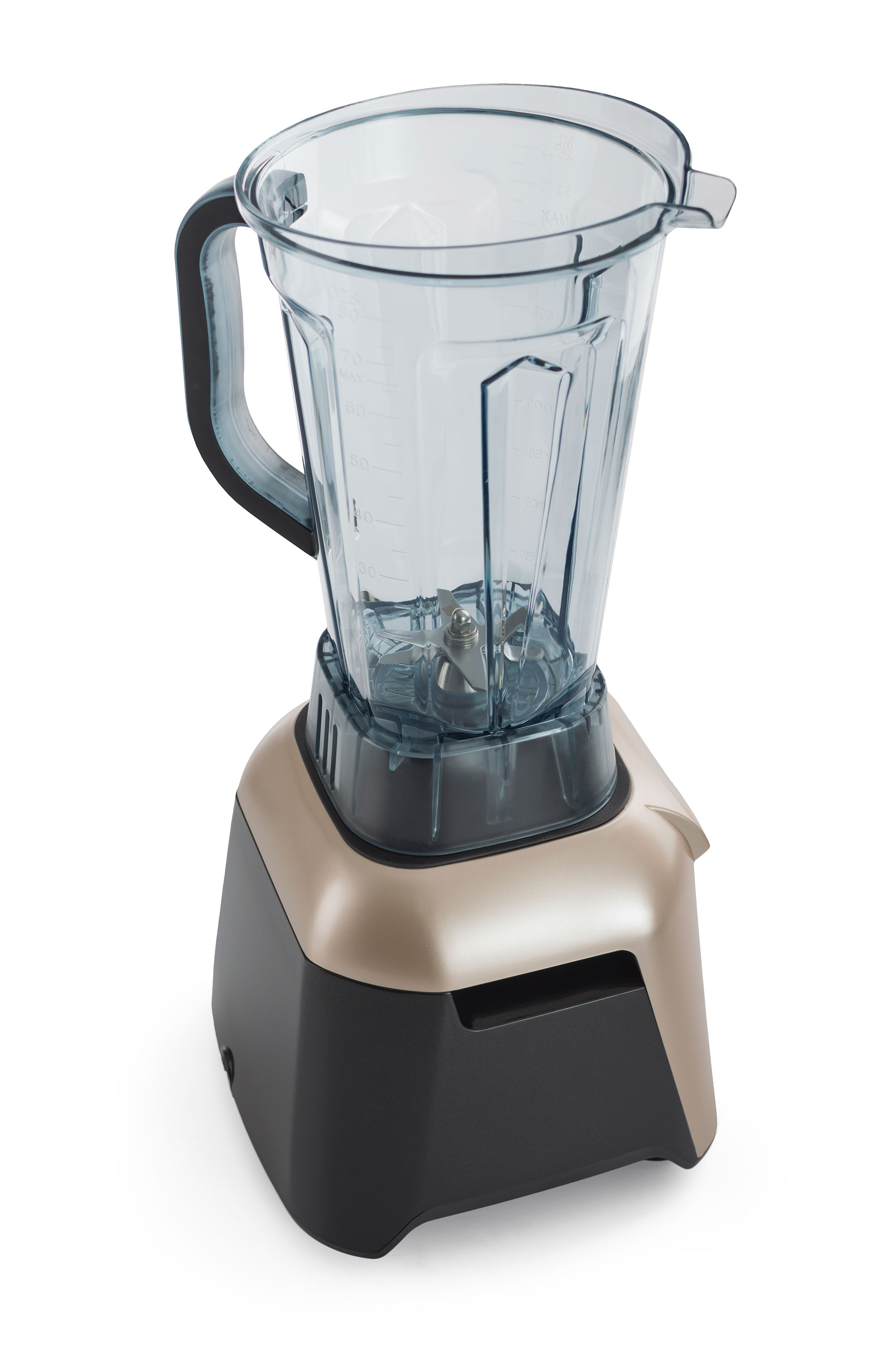 Stěny základní nádoby 2,5 l jsou vyrobeny z tritanu, speciálního odlehčeného zdravotně nezávadného (BPA free) a hlavně vysoce odolného materiálu. Tišší chod jsme pojistili odhlučněním motorové jednotky. Nádoba hladce dosedá na základnu s kovovými převody. Šestice nožů ze super kvalitního materiálu a v ideálním tvaru dokáže jemně nadrtit skutečně vše. Potřebujete dolít trochu vody během mixování? Žádný problém! Díky malému víčku se vám to povede bezpečně i za chodu. Po použití můžete nádobu buď propláchnout nebo vložit do myčky.