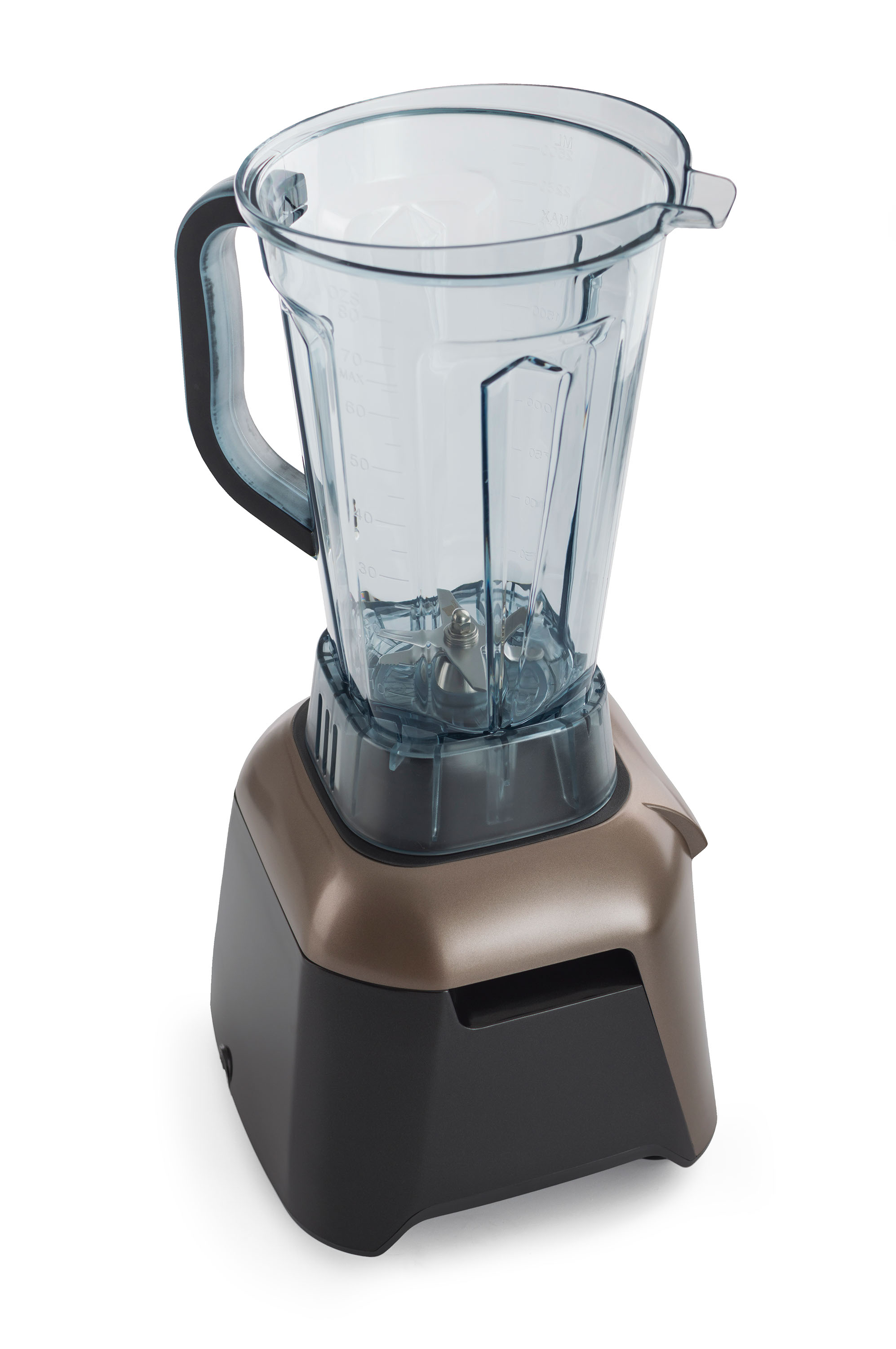 Stěny základní nádoby 2,5 l jsou vyrobeny z tritanu, speciálního odlehčeného zdravotně nezávadného (BPA free) a hlavně vysoce odolného materiálu. Tišší chod jsme pojistili odhlučněním motorové jednotky. Nádoba hladce dosedá na základnu s kovovými převody. Šestice nožů ze super kvalitního materiálu a v ideálním tvaru dokáže jemně nadrtit skutečně vše. Potřebujete dolít trochu vody během mixování? Žádný problém! Díky malému víčku se vám to povede bezpečně i za chodu. Po použití můžete nádobu buď propláchnout nebo vložit do myčky.