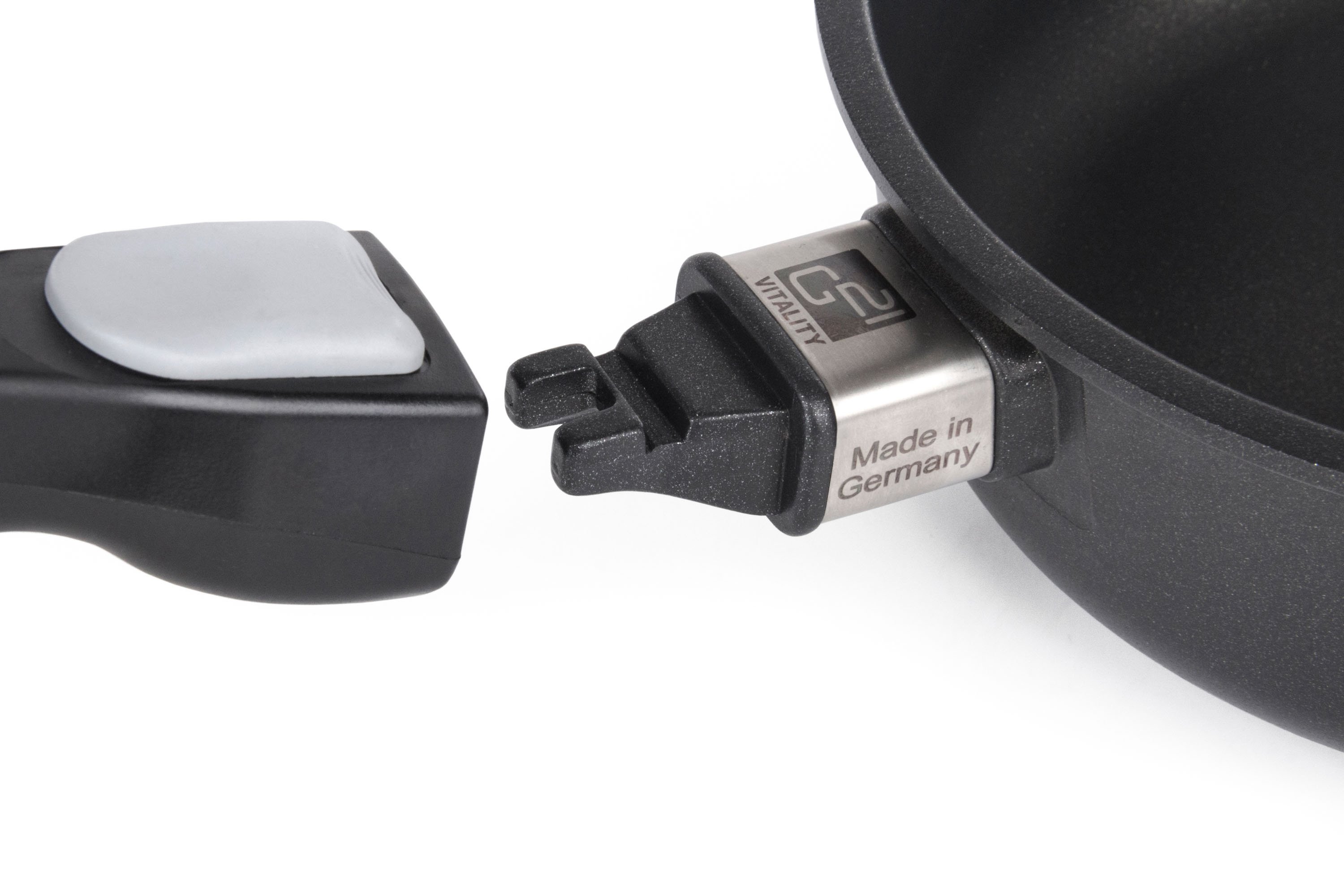 Na kulaté pánvi s pětivrstvým silným dnem a nepřilnavým povrchem LOTAN® můžete smažit, zapékat, restovat i dusit bez použití tuku. Univerzální pro všechny typy ohřevu, záruka 2 + 2 roky, vyrobeno v Německu.