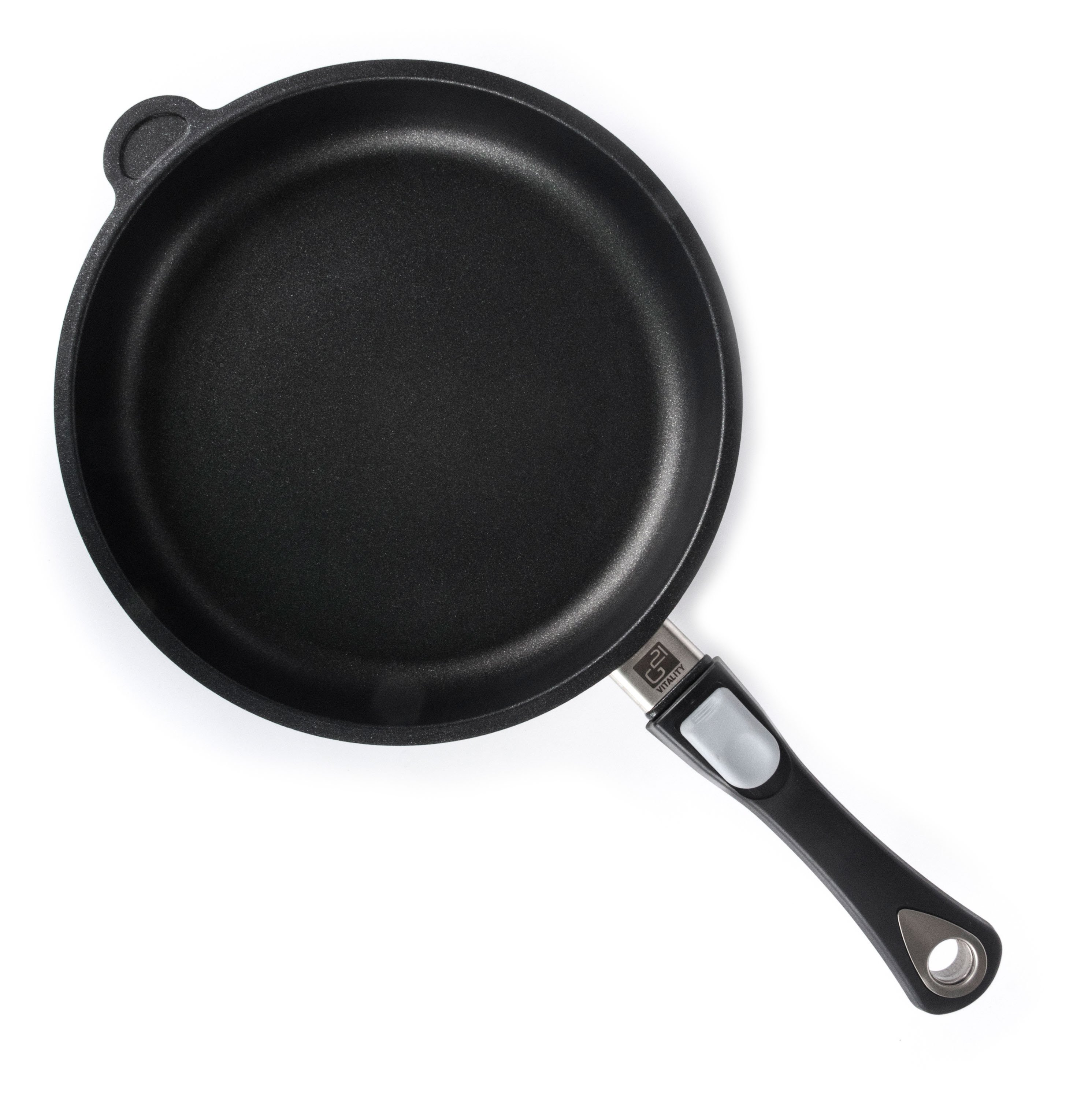Pánev G21 Prime 26 s odnímatelnou rukojetí má i speciální výběžek pro kontrolu správného rozpálení pánve. Postup je jednoduchý – kápněte na něj pár kapek vody a zjistíte, zda je už teplota pánve ideální pro přípravu jídel.