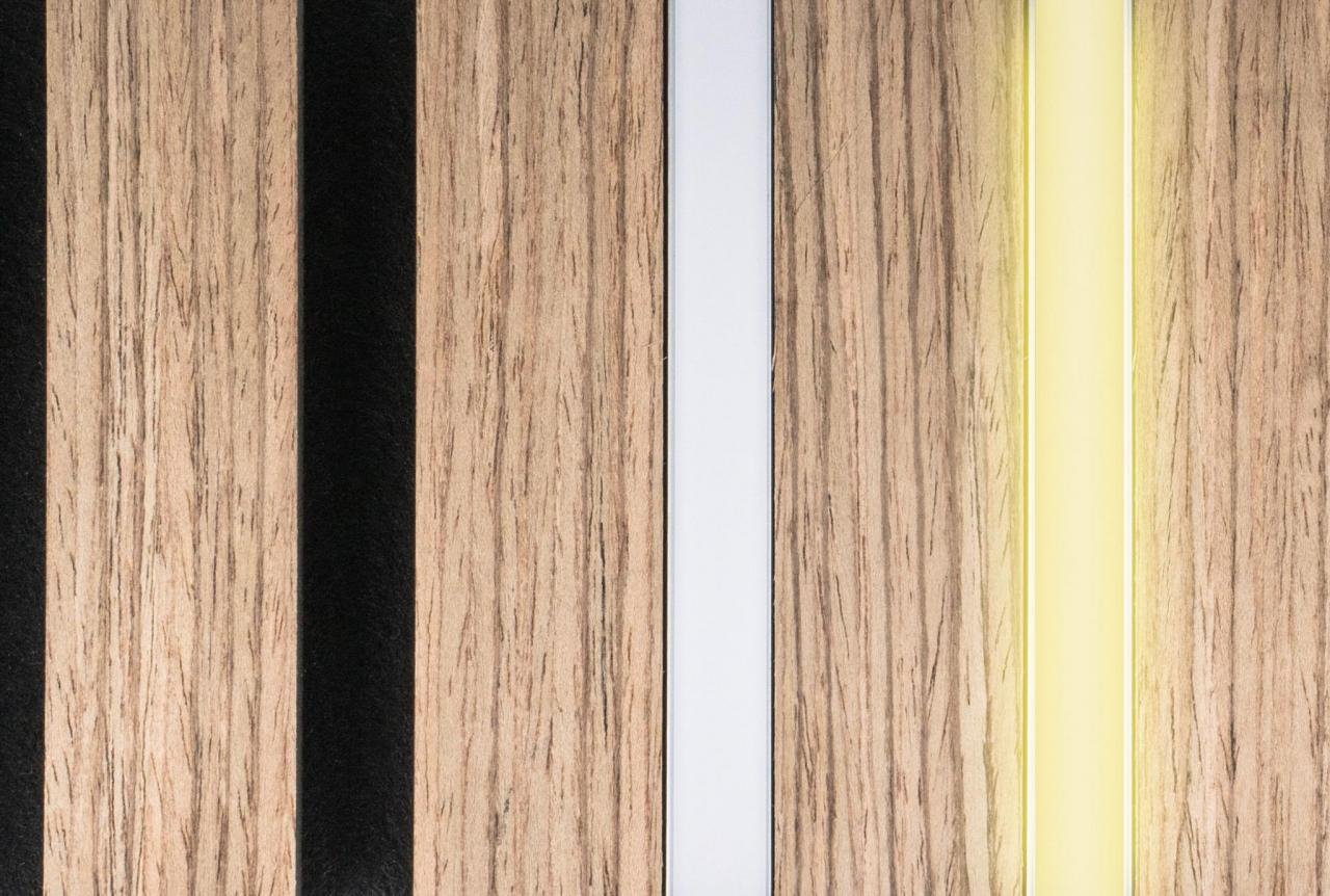 Správně zvolené osvětlení dokáže i navodit atmosféru a podtrhnout detaily interiéru. LED osvětlení v akustických panelech je vizuálním zážitkem, navíc také výrazně šetří energii i peníze. Spojení designového lamelového obkladu se světelným profilem tvoří krásný i praktický designový prvek. Podívejte se, jaké má přednosti.