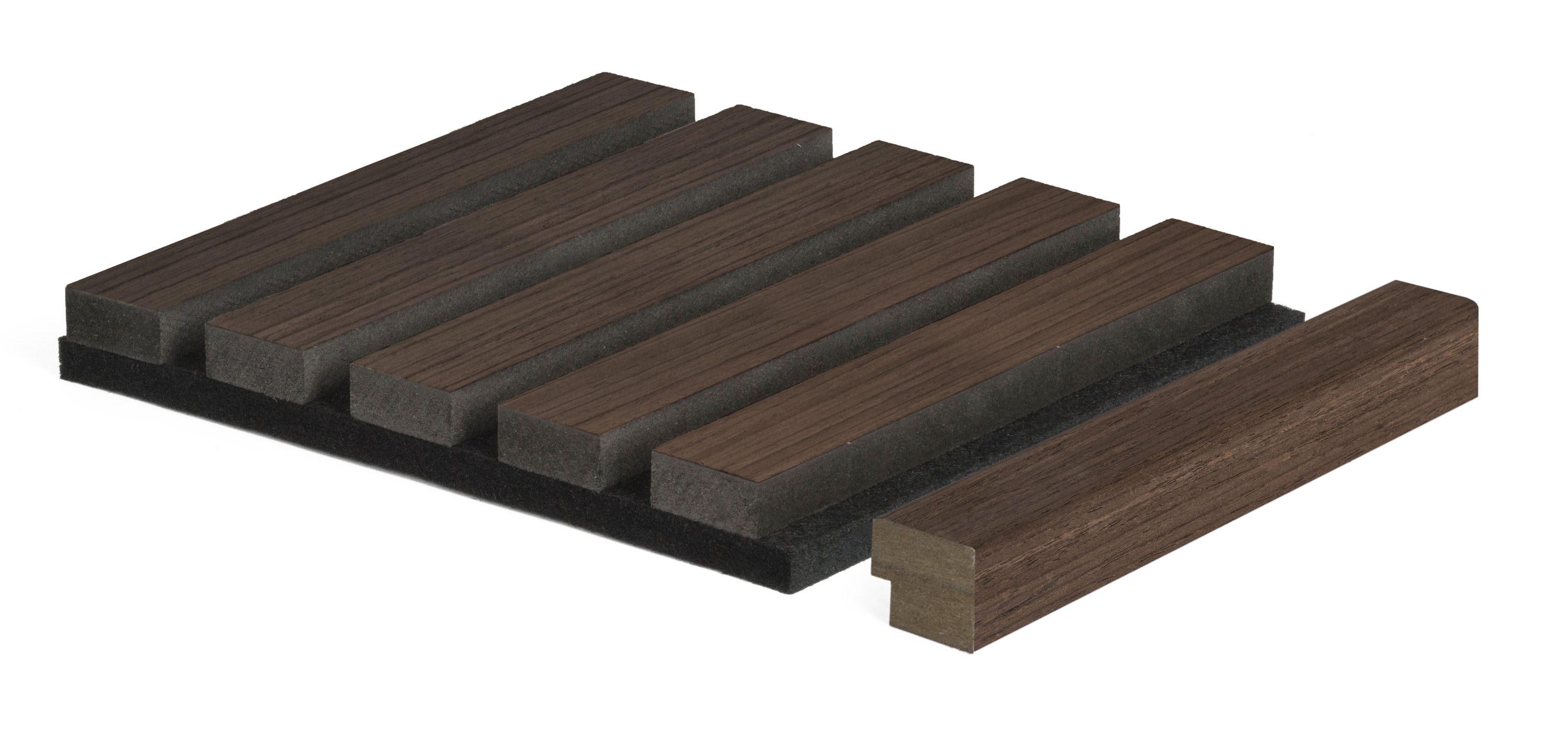 Zakončovací lišta G21 v barvě tmavý ořech je ideální pro elegantní zakončení obložení z akustických panelů.