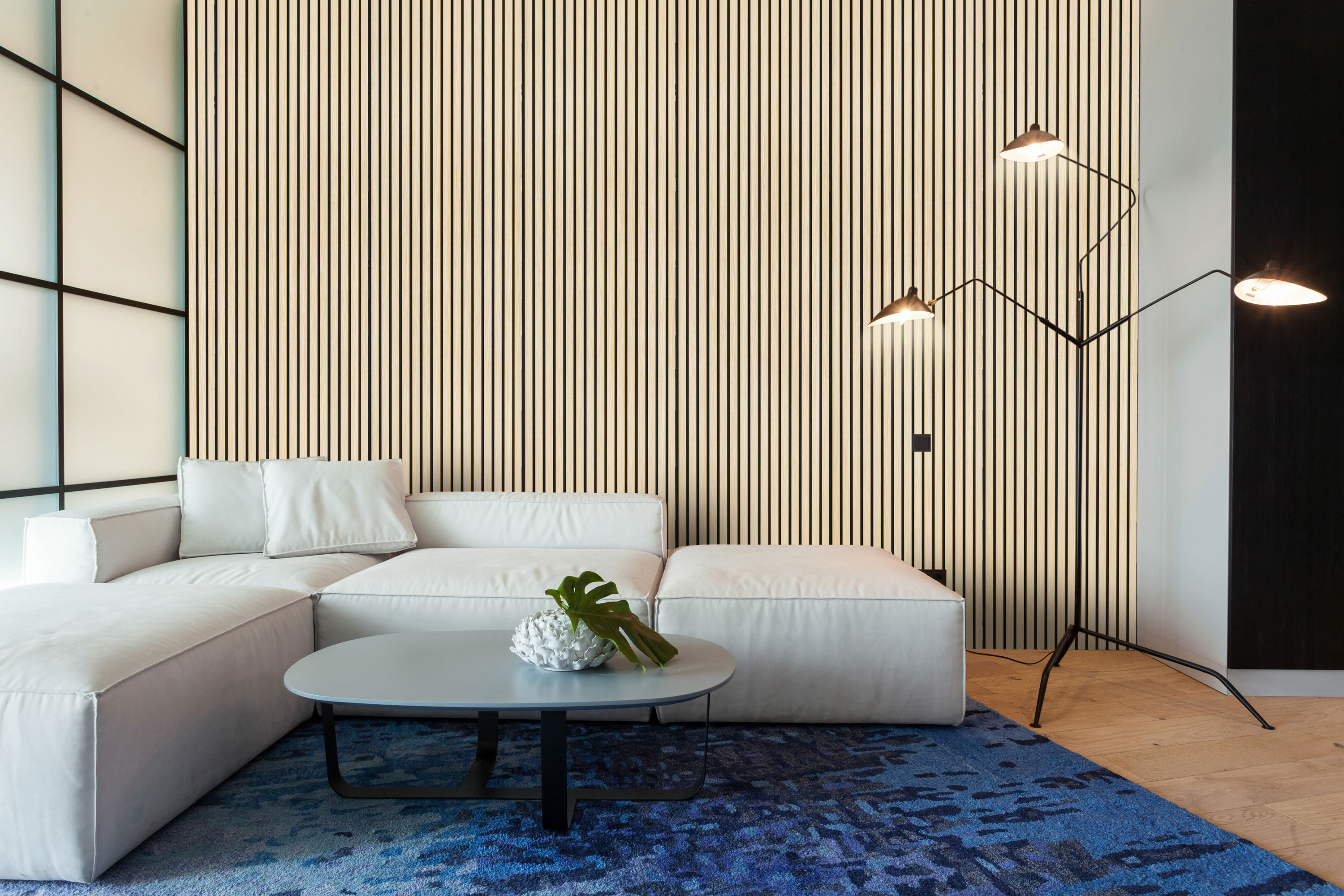 Designový interiérový akustický nástěnný panel pro snížení hluku a zlepšení akustiky v domácnostech i kancelářích. Atraktivní design, snadná montáž, dekor hikora.