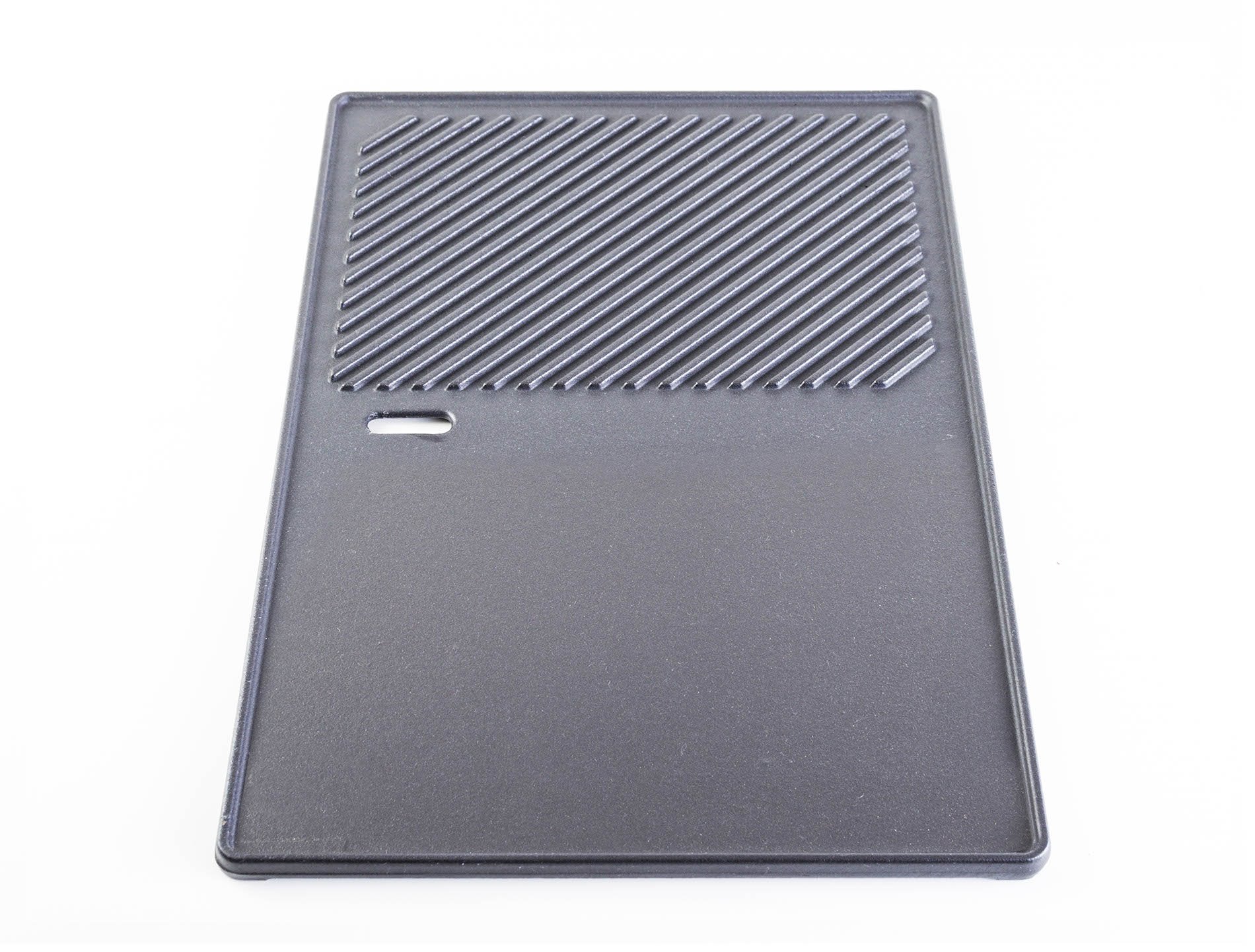 Litina patří mezi nejodolnější materiály, které se pro grilování používají. Je vysoce odolná proti vysokým teplotám a poškrábání. Na každé polovině litinového plátu máte k dispozici jiný druh povrchu. Jedna polovina je hladká a využijete ji především pro grilování nakrájené zeleniny, vajíček a sýrů. Druhá polovina s vroubky je určena pro správné grilování steaků, větších kusů zeleniny a ryb.