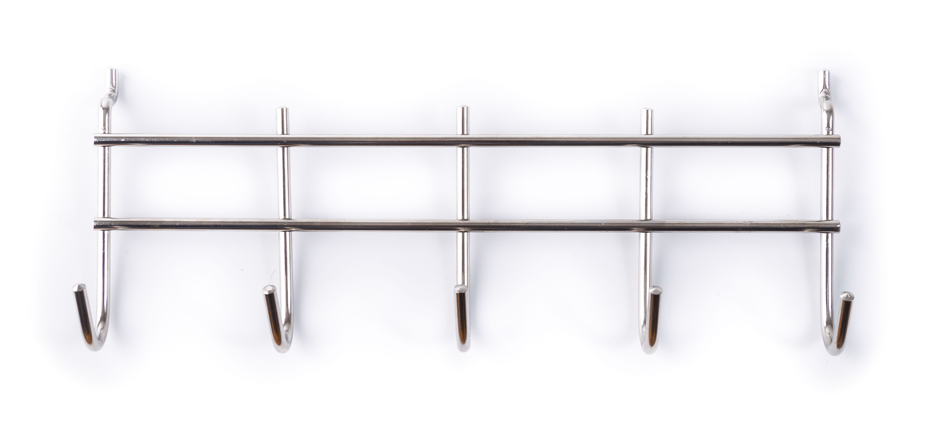 5 háčků na liště, kterou jednoduše zavěsíte do připravených otvorů u plynových grilů G21, slouží k zavěšení nejčastěji používaného grilovacího nářadí. Při grilování tak nemusíte hledat grilovací vidlici nebo kleště – stačí po paměti sáhnout na boční stěnu grilu a uchopit právě potřebné nářadí.