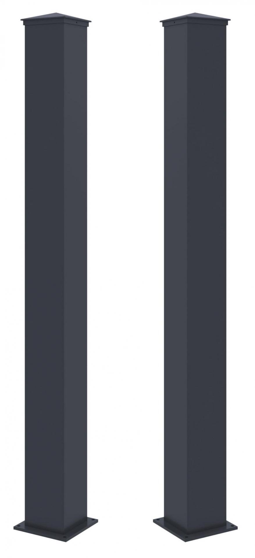 Hliníkový sloupek z uzavřeného profilu s práškovým nástřikem, s patkou a záslepkou, výška 171 cm, 2 kusy v balení.