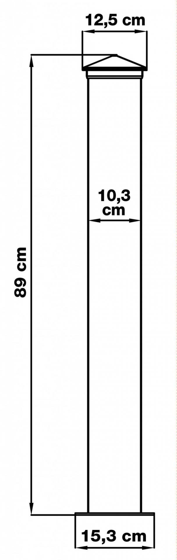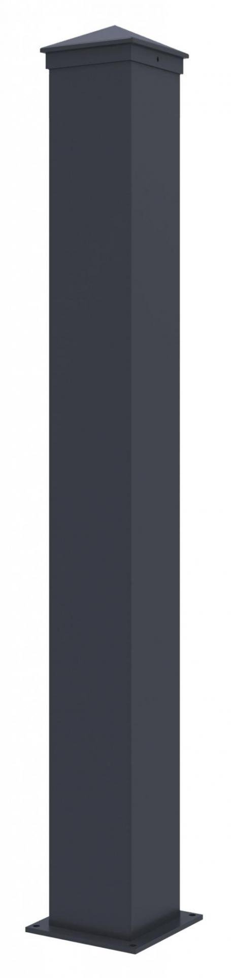 Hliníkový sloupek z uzavřeného profilu s práškovým nástřikem, s patkou a záslepkou, výška 89 cm.