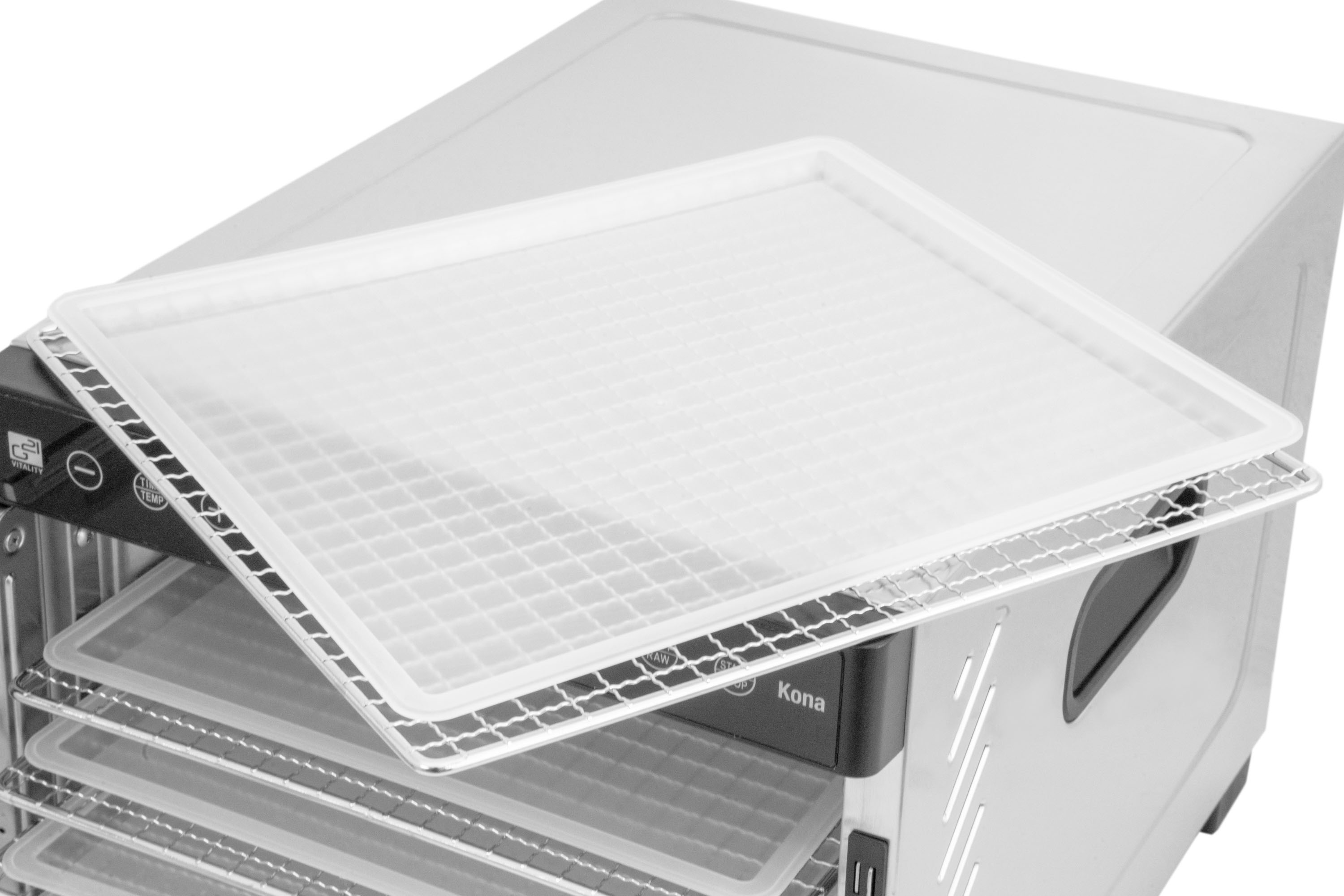 Sušící vložka G21 na sušení tekutých surovin je nepřilnavá, takže se na ni nic nelepí. S rozměry 25 x 27,5 cm krásně vklouzne do sušičky G21 Kona. Povrch sušícího tácu je snadno omyvatelný, stačí jej po sušení opláchnout vodou. Přípravu pochoutek už kvůli vyhlídce na následný úklid nemusíte odkládat :-)