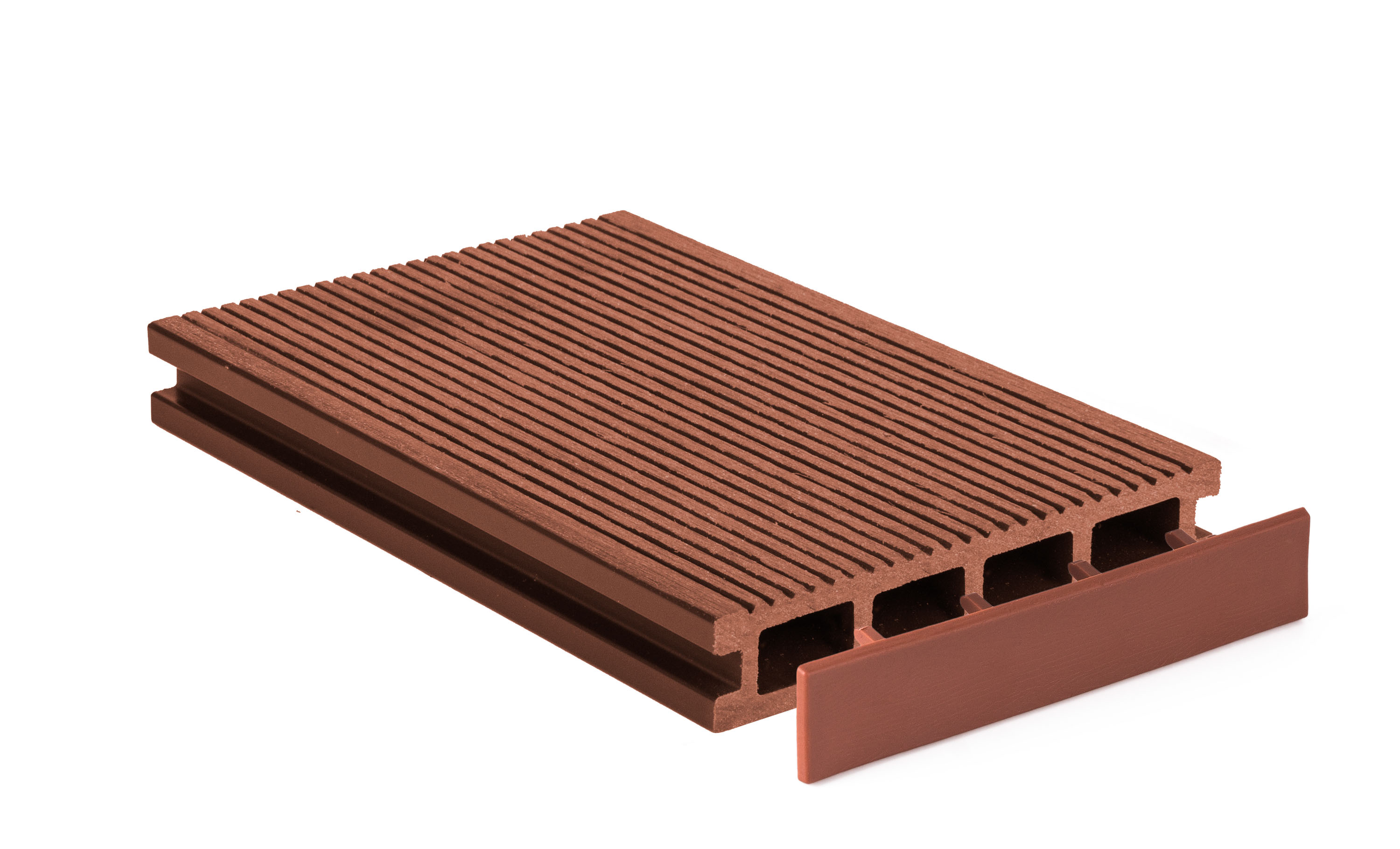 Krytka G21 pro zakončení WPC terasových prken, uchycení pomocí lepidla (není součástí balení), rozměry 13,7 x 2,4 x 1,7 cm, barva Třešeň.