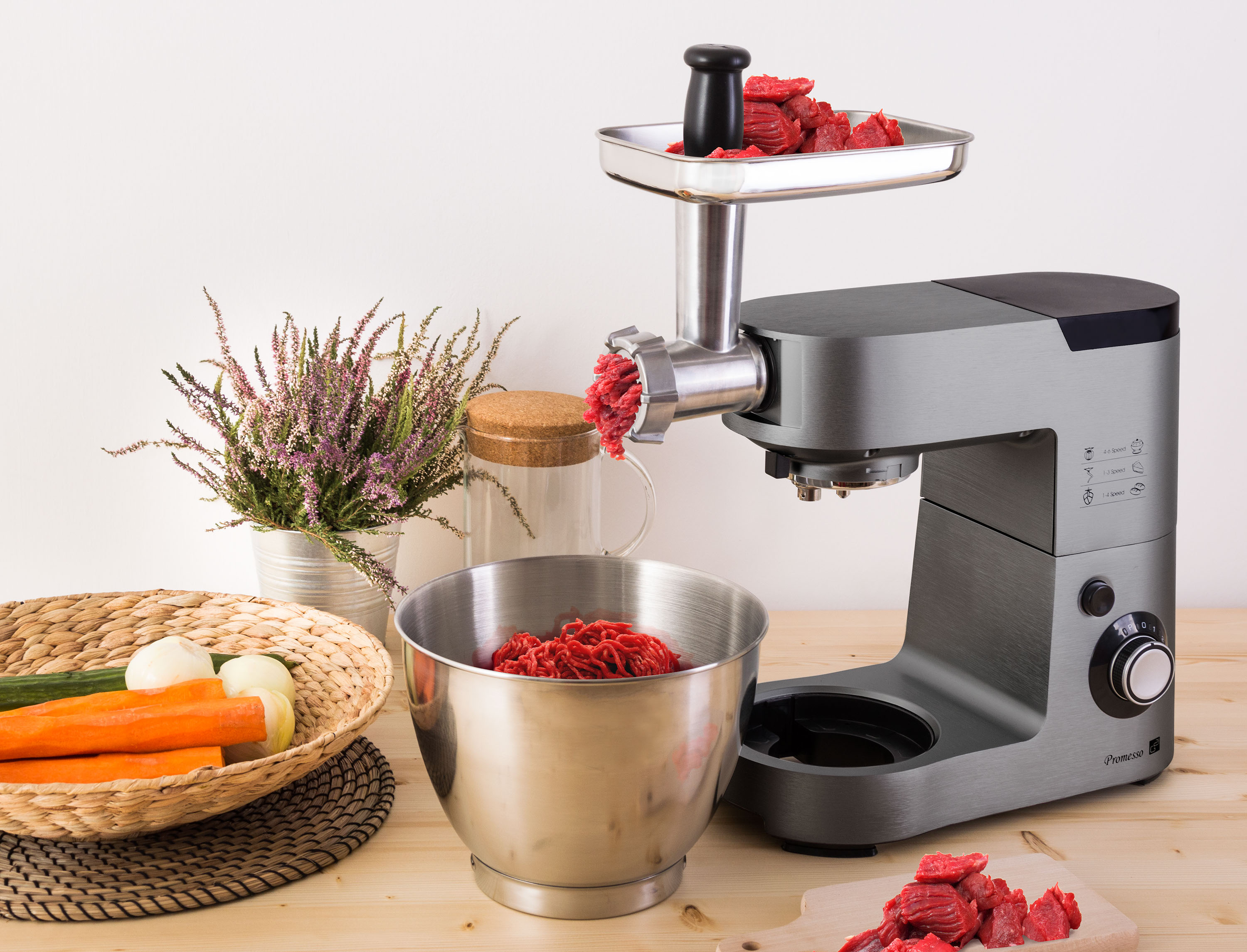 Celokovový kuchyňský robot G21 Promesso Aluminium s neuvěřitelným výkonem 1 500 W má už v základním balení kompletní příslušenství pro mixování, hnětení, míchání, mletí a další činnosti.