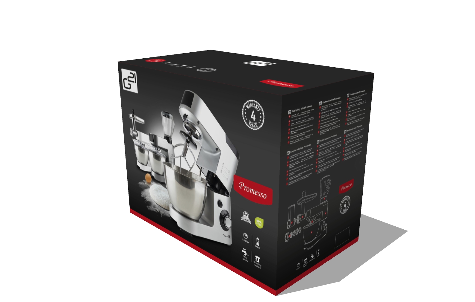 Jeden za všechny – charakteristika celokovového kuchyňského robota s kovovými převody G21 Promesso je přesná. S výkonem 1 500 W, neuvěřitelně bohatým příslušenstvím a 4letou zárukou na kvalitu zastane veškerou práci při přípravě na vaření, pečení i mixování.