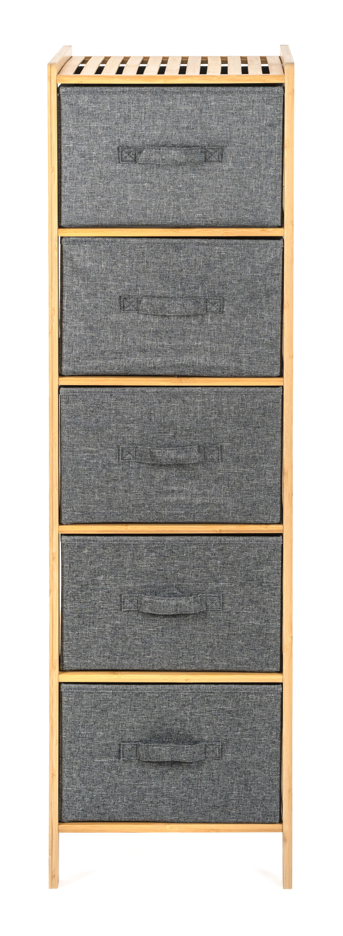 Praktický stojan s 5 výsuvnými textilními košíky ušetří spoustu místa a uložíte do něj vše, co potřebujete. Potřeby na praní nebo kosmetiku, oblečení i dětské hračky. Každý košík má objem 21 litrů, šířka je 33 cm, výška 19 cm a hloubka 35 cm. Celý stojan má na výšku 1,20 m.