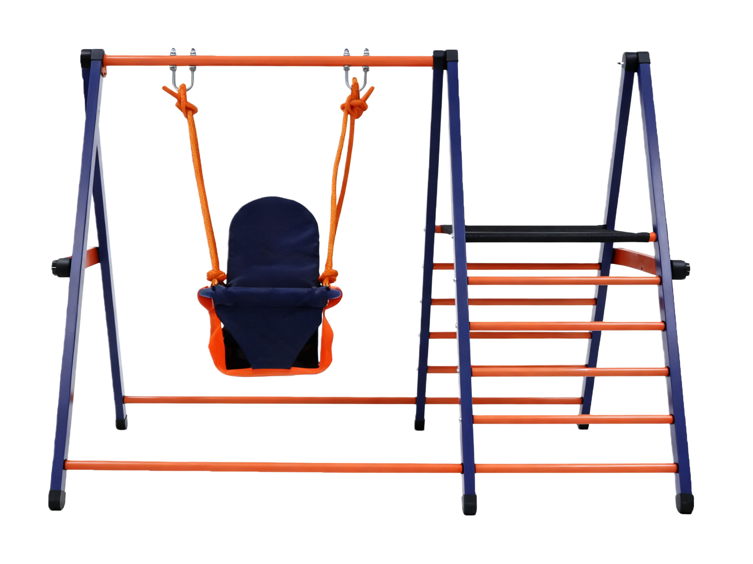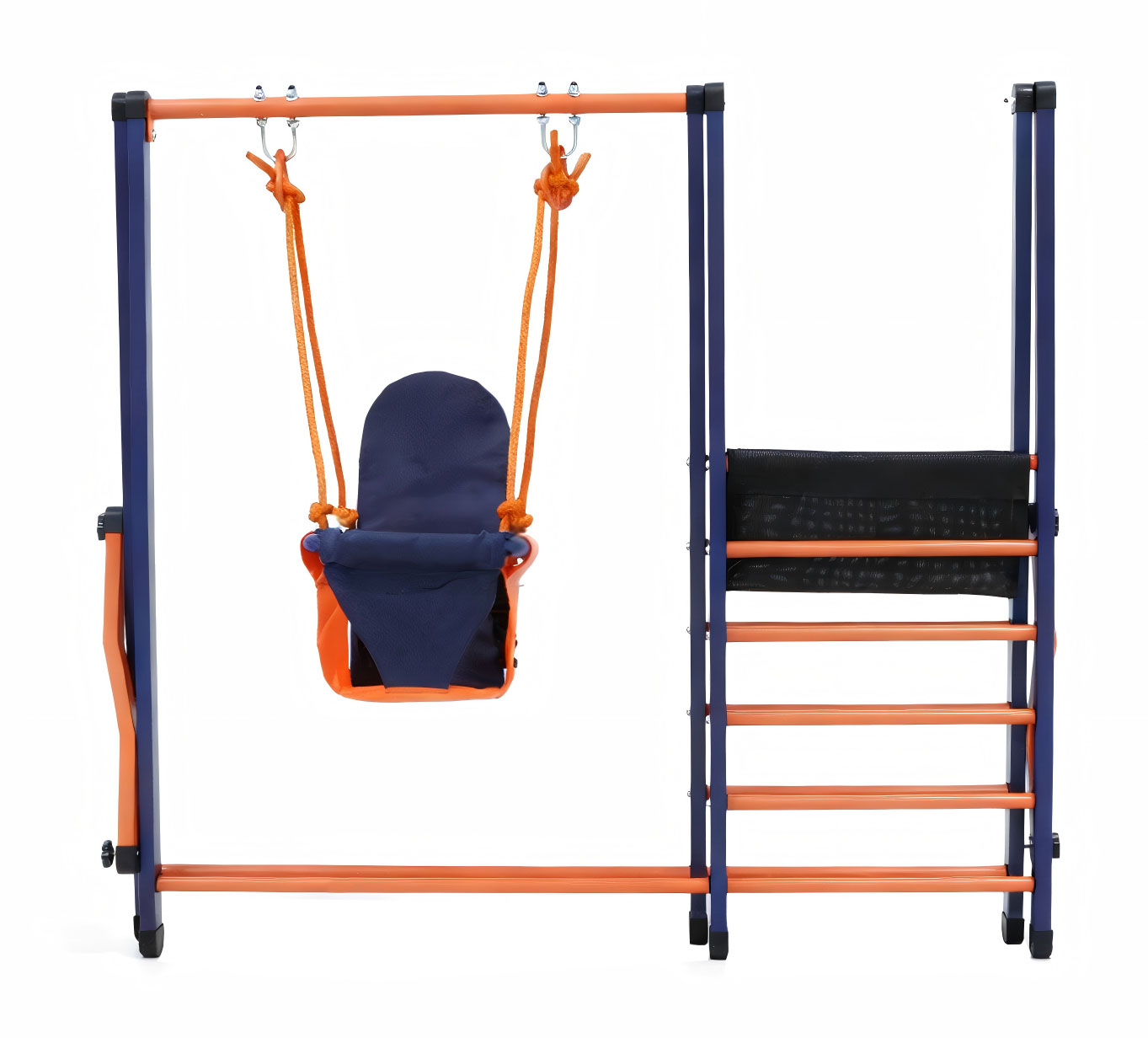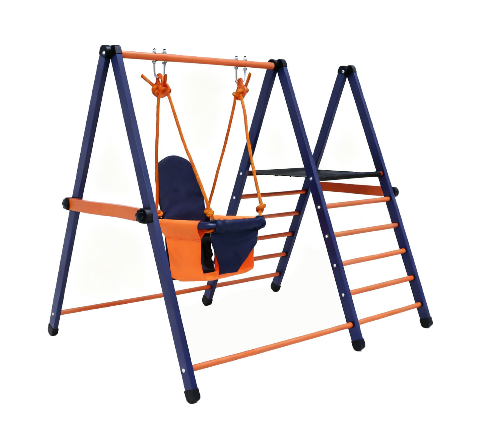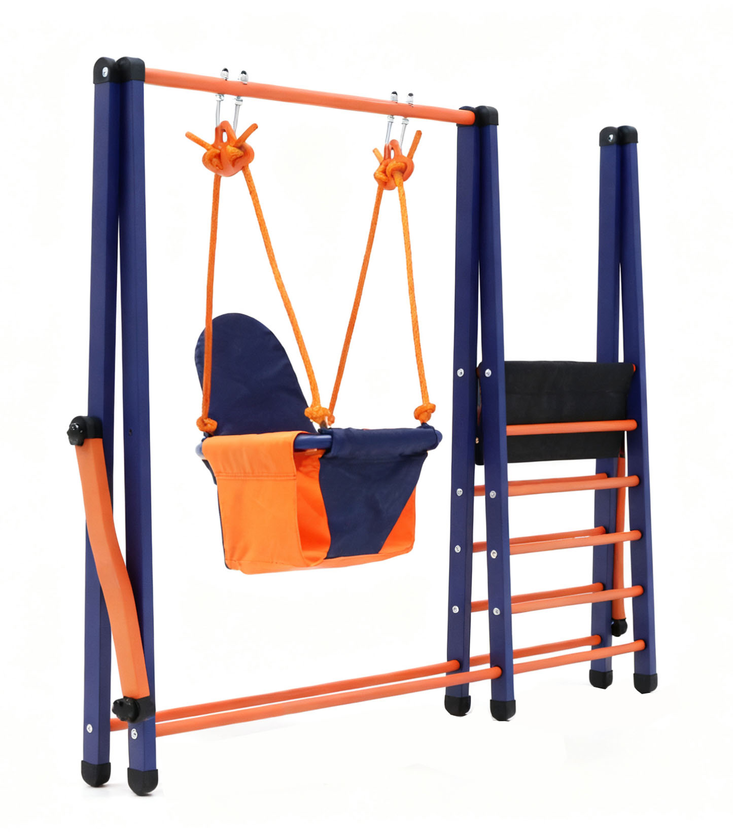 Skládací houpačka pro děti 6–36 měsíců, nosnost 25 kg, pozinkovaná konstrukce, žebřík, vhodná do bytu i na zahradu.