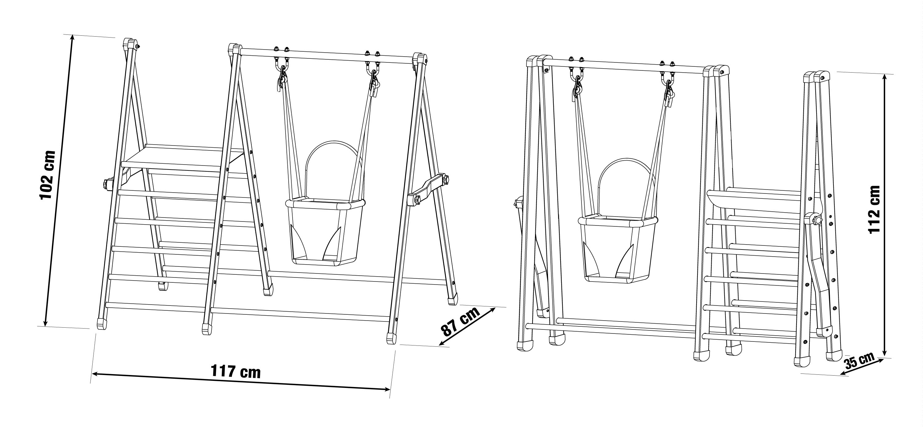 Nezáleží na tom, jestli zrovna venku prší, nebo svítí slunce. Vaše ratolesti se pobaví na houpačce za každého počasí. Díky kompaktním rozměrům a nízké hmotnosti konstrukce můžete houpačku snadno přenášet z interiéru na zahradu, nebo ji pohodlně zaklidit do garáže. Součástí konstrukce je také žebřík, který dětem nabízí další možnost hry a podporuje jejich přirozené pohybové dovednosti.