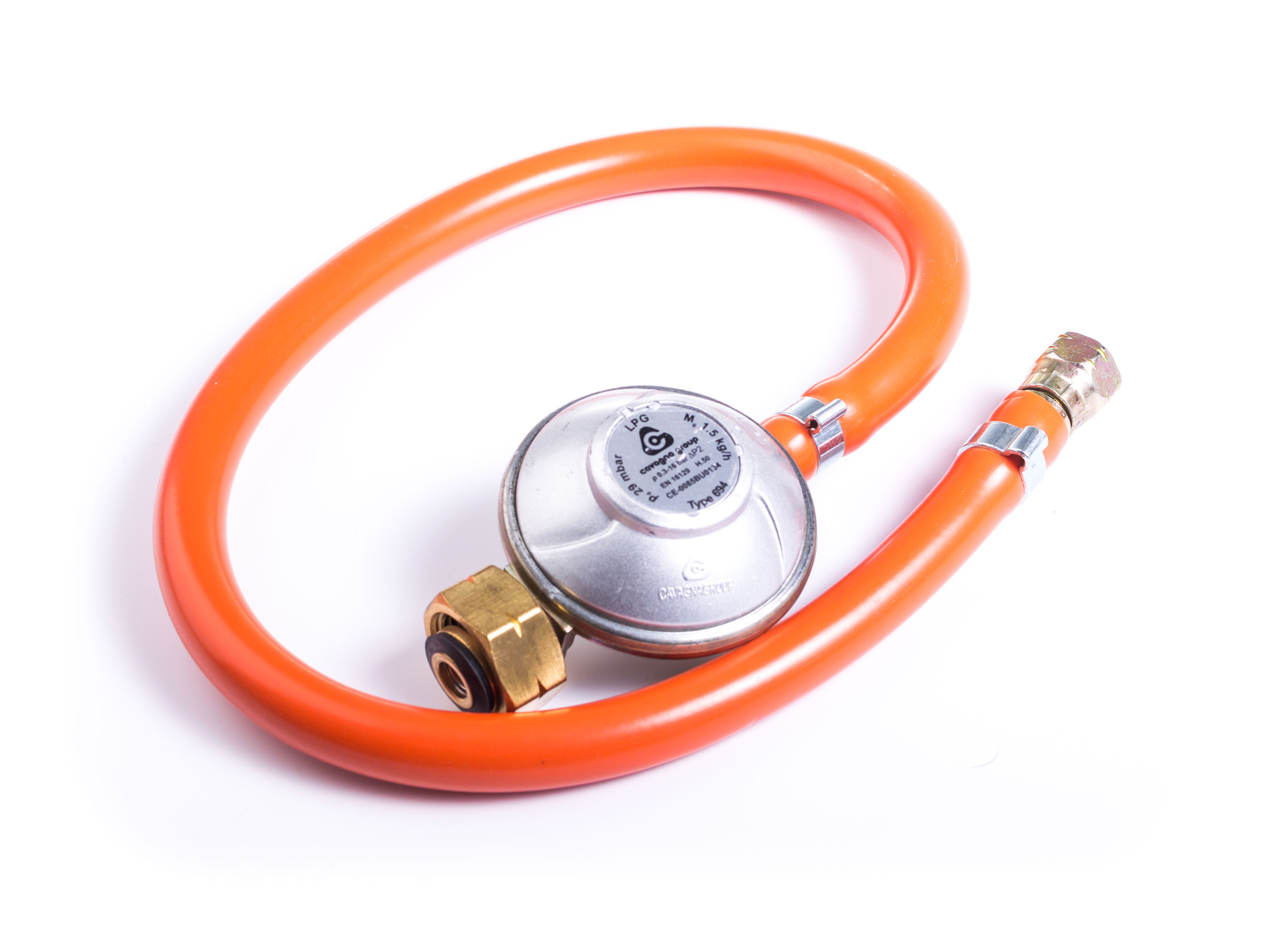 Bezobslužný redukční ventil G21 s hadicí, snadné a bezpečné připojení propanbutanové lahve k plynovým grilům G21, spolehlivé snížení tlaku v plynové bombě. Oranžová barva.