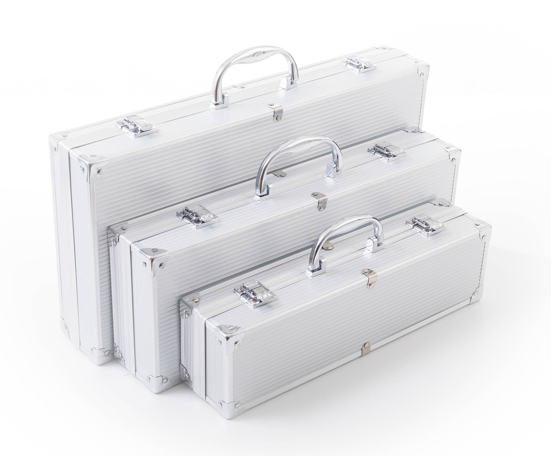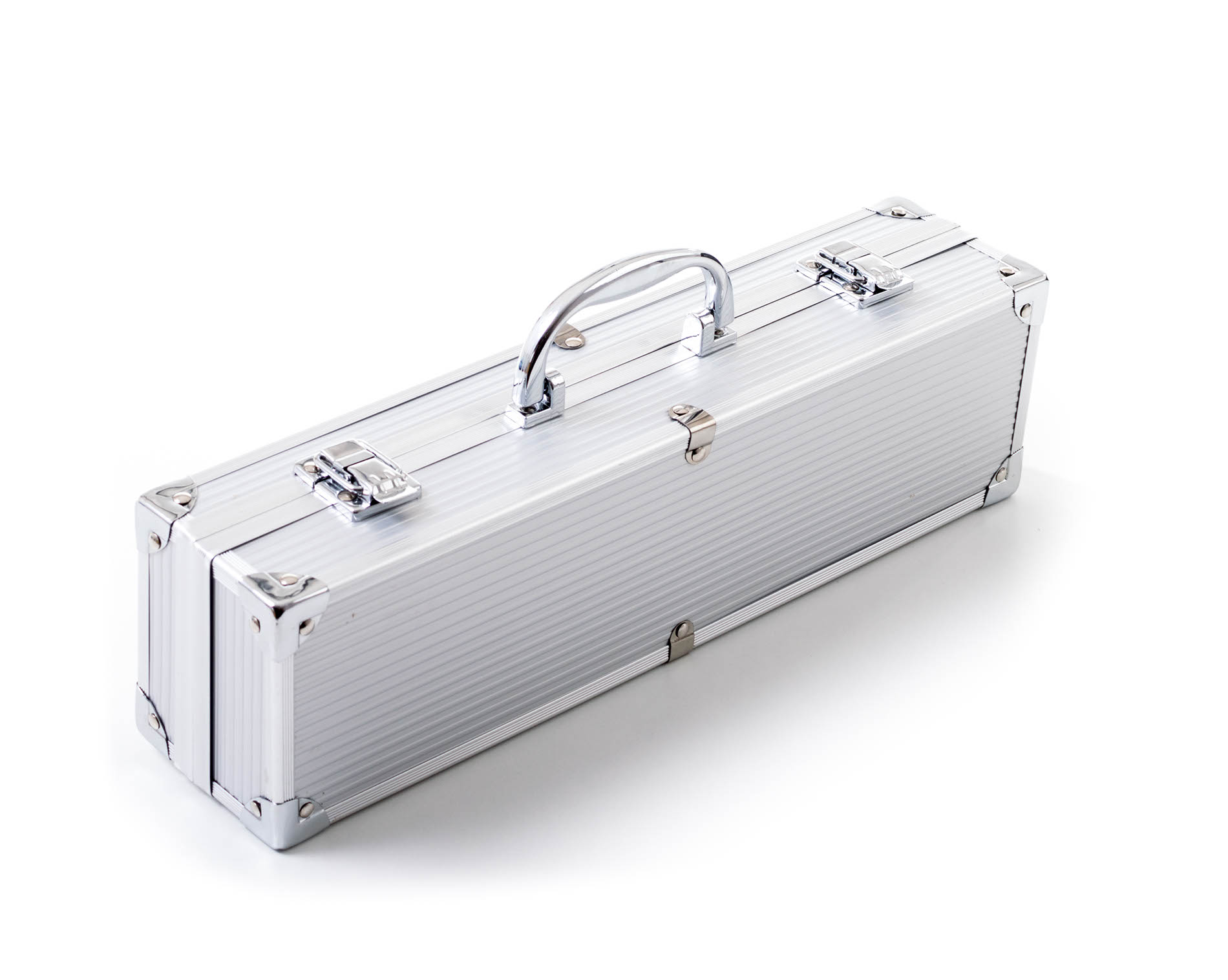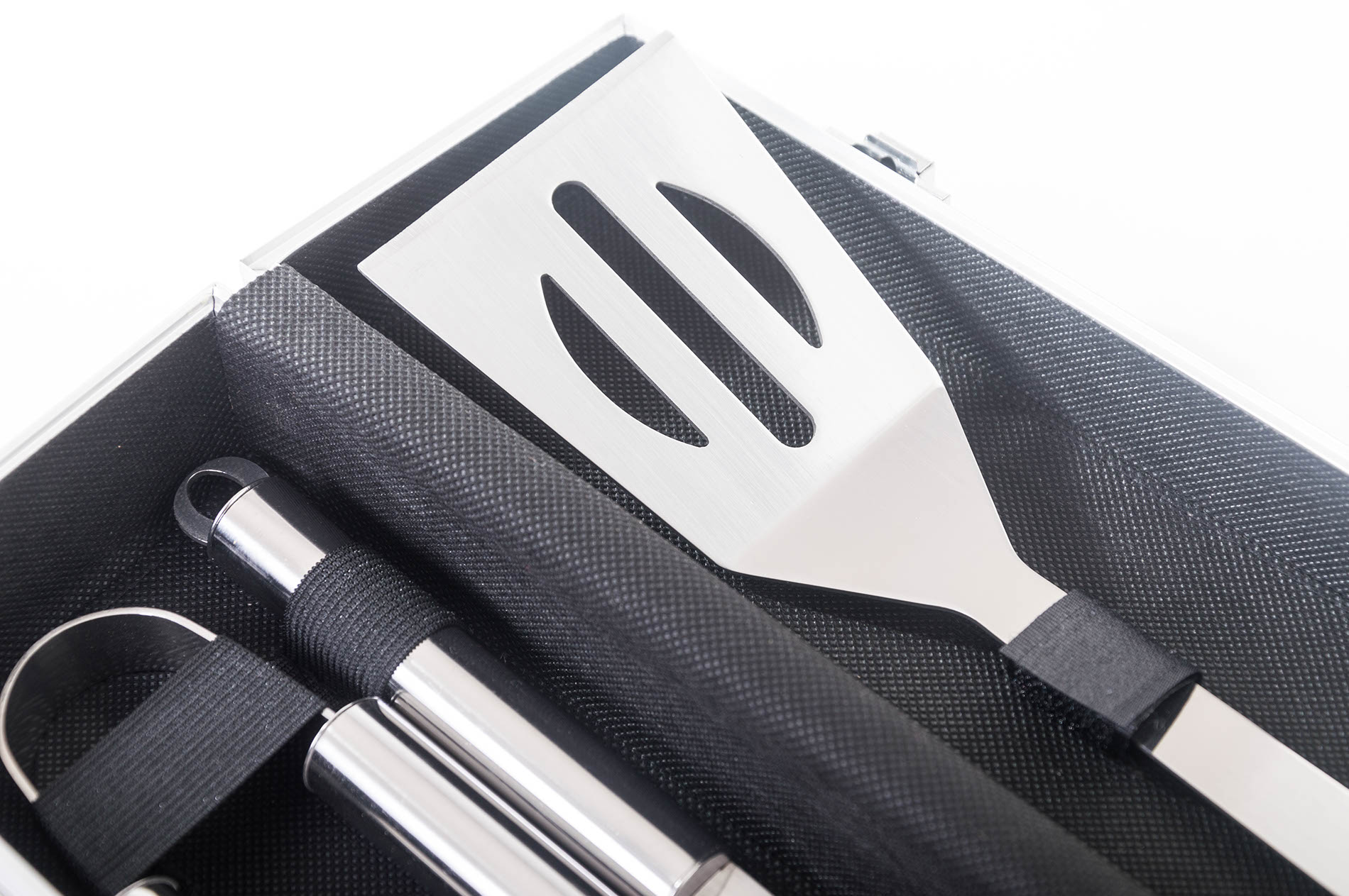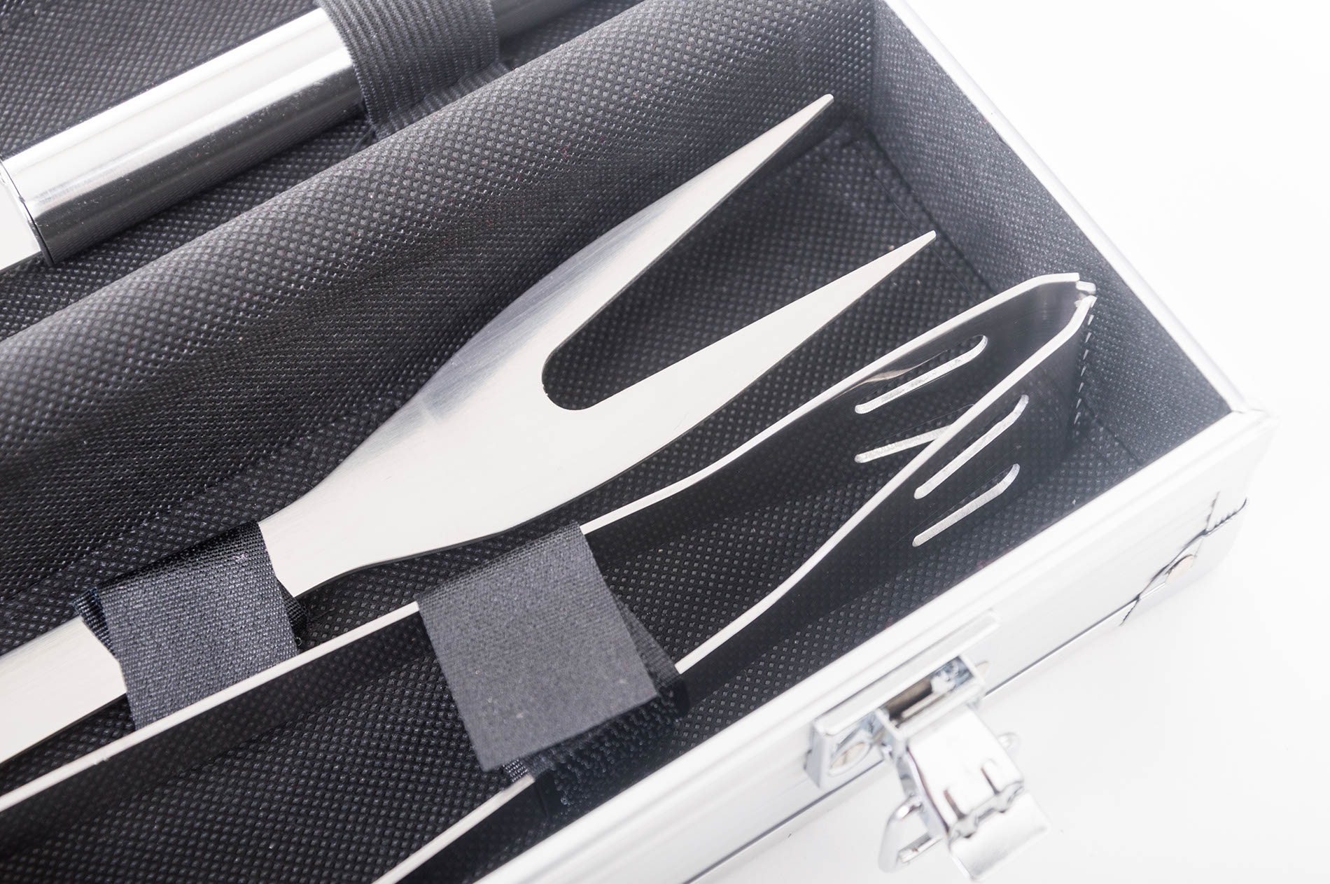 Sada obsahuje kompletní nástroje pro grilování bez potíží. Součástí sady je obracečka, vidlička a kleště o délce 34 cm. Pro snadné přenášení a skladování je nářadí uloženo do praktického hliníkového kufru.