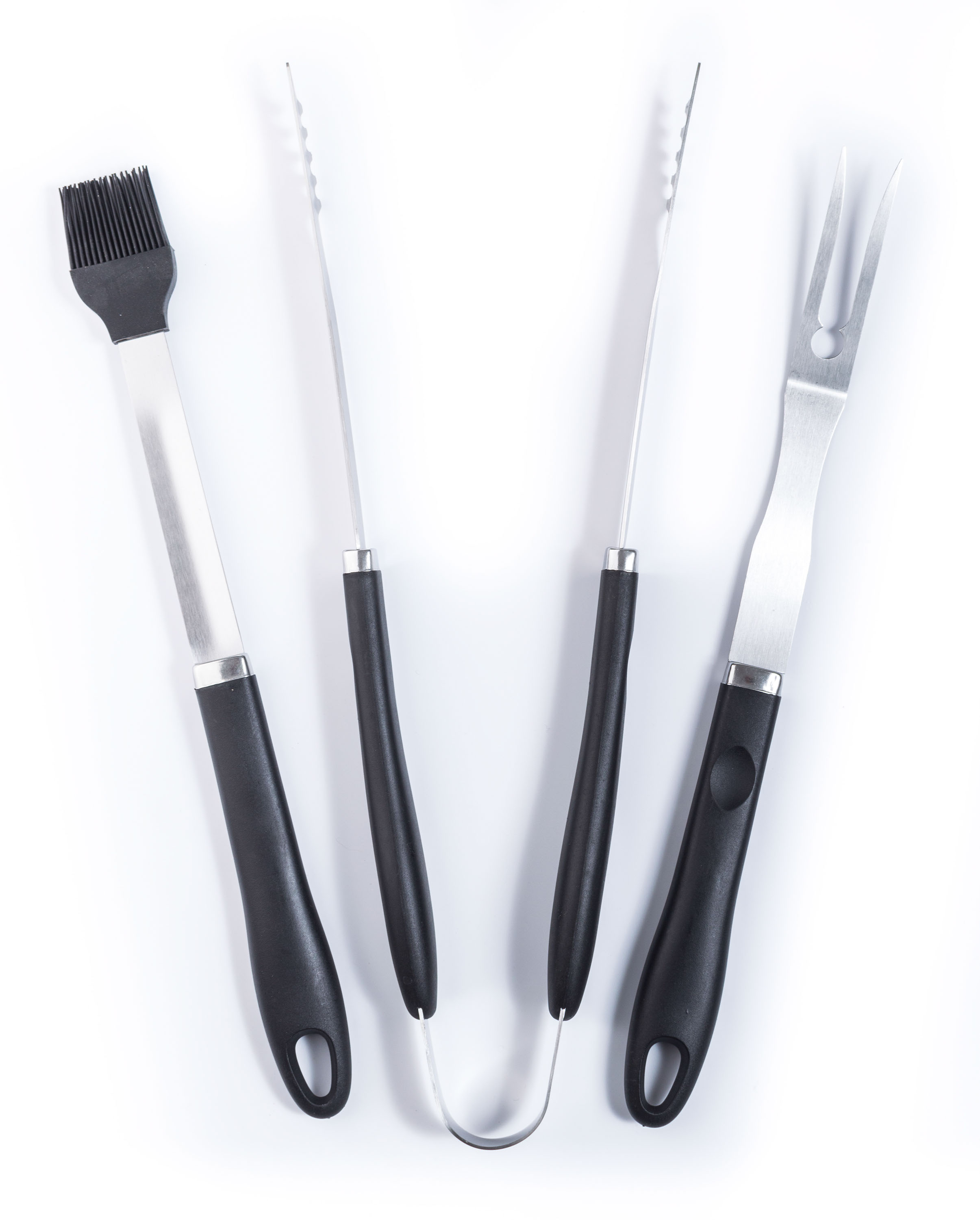 Praktické omyvatelné rukojeti z odolného plastu jsou přizpůsobeny pro pohodlné držení a díky očku na zavěšení je můžete odkládat na grilovací háčky G21. Grilovací kleště (45 cm) a grilovací vidlička (41 cm) jsou z nerezu, štětec na marinování (41 cm) je ze žáruvzdorného silikonu.