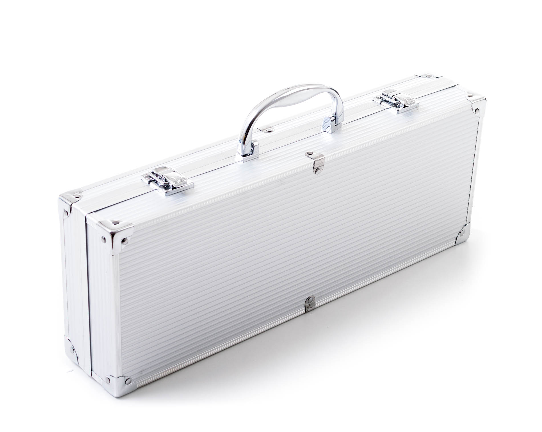 G21 grilovací nářadí v kufříku obsahuje obracečku, vidličku, grilovací kleště, prodloužený grilovací nůž a štětec na potírání. Odolný hliníkový kufřík zajistí snadné a bezpečné přenášení a skladování grilovacího náčiní o délce 40 cm.