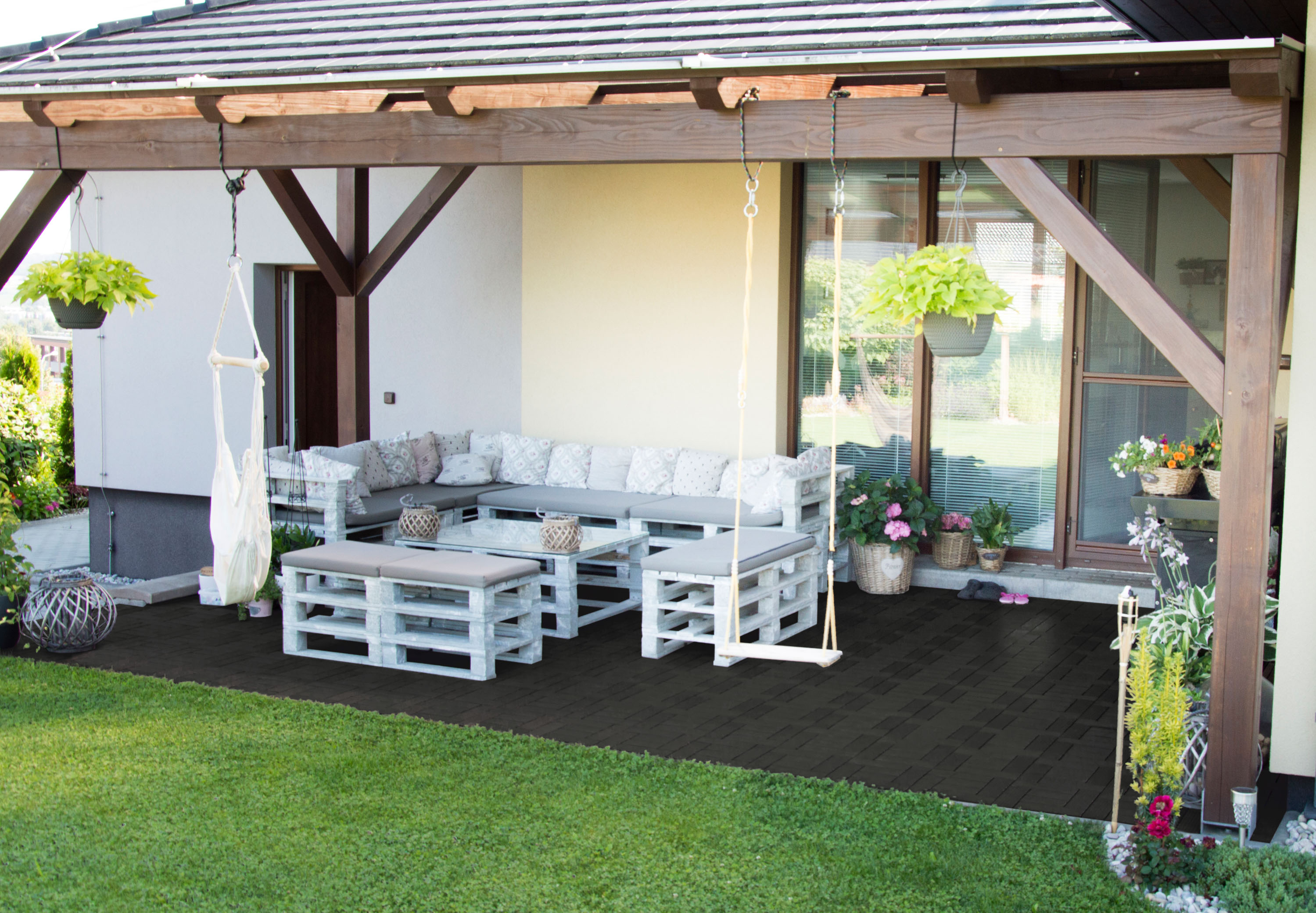 Bezpečný a protiskluzový povrch – Na rozdíl od dřevěných teras můžete po WPC terasách a podlahách chodit klidně i na boso, jelikož vám nebude hrozit zadření třísky. Jsou opatřeny protiskluzovou vrstvou, takže je můžete využívat u bazénů či za deště.