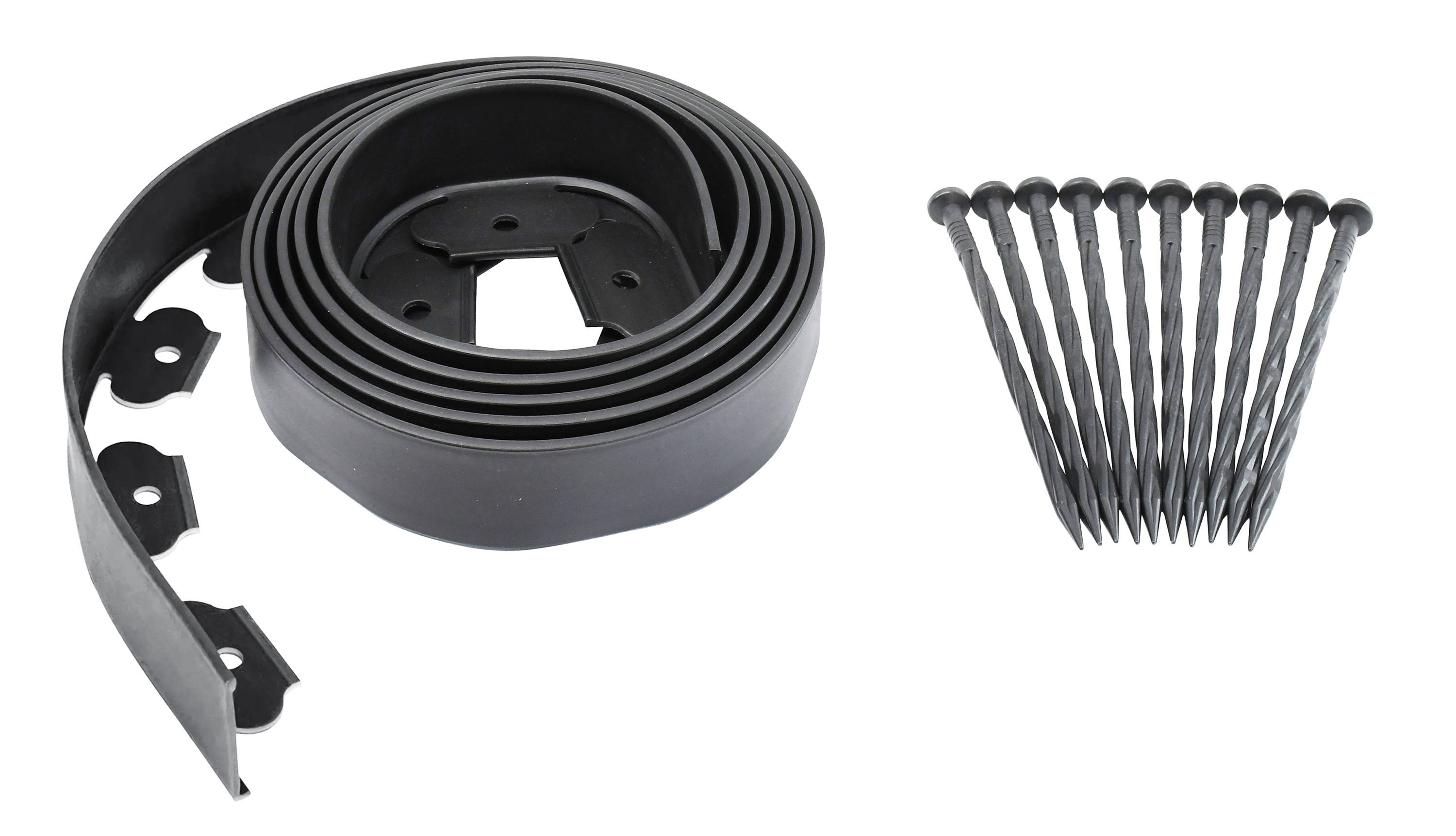 V základním balení najdete vše. Jak obrubník o délce 3 m, tak i 10 hřebů pro po spolehlivé uchycení neviditelného obrubníku k zemi. Na spodní straně obrubníkového pásu jsou otvory, do kterých vložíte přiložené hřeby a zatlučete je.