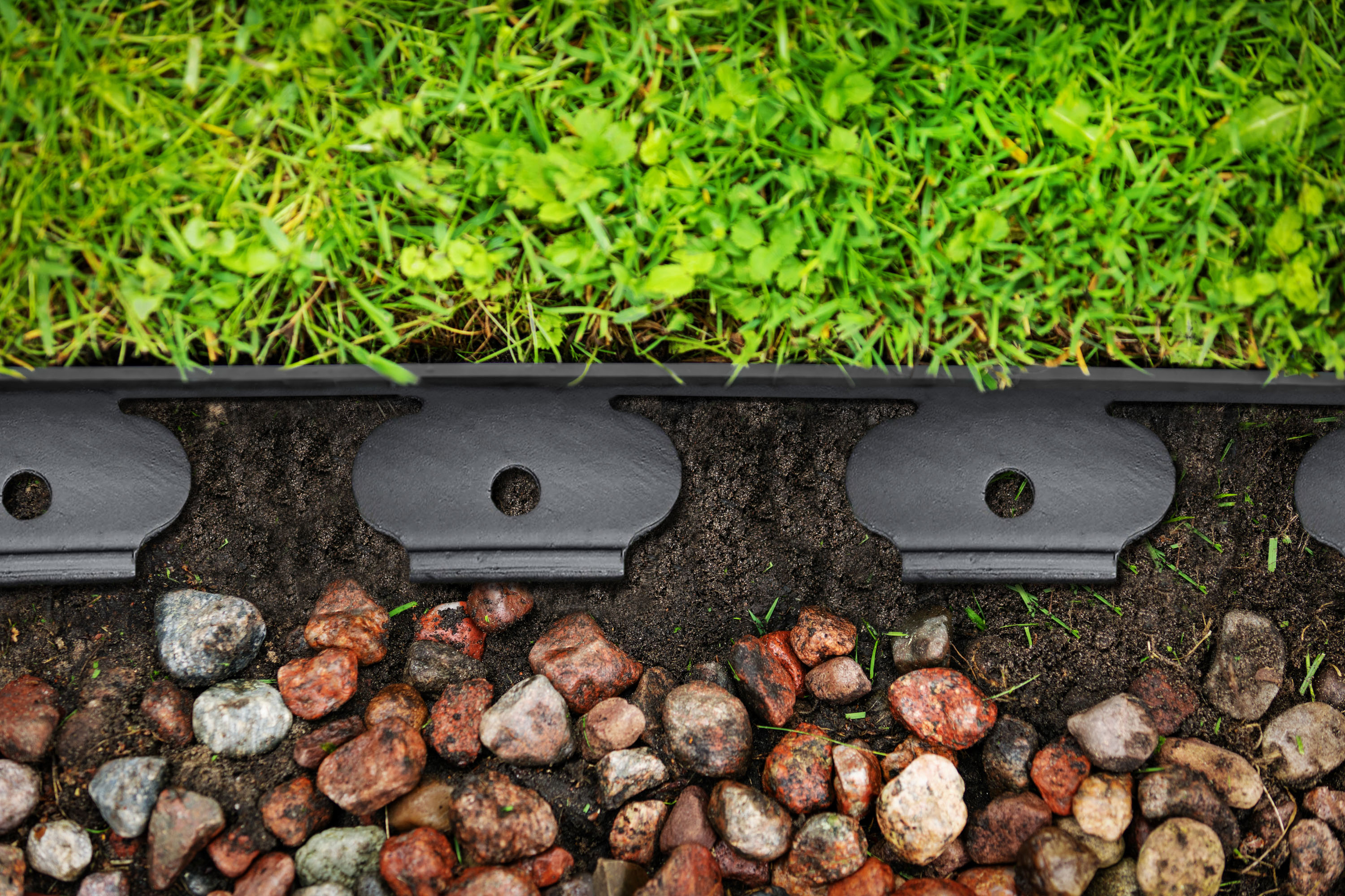 Skrytý zahradní obrubník G21 o délce 3 m rozdělí zahradu nebo pozemek na menší části nebo vytyčí záhon ve tvaru, jaký potřebujete. Velká odolnost, dlouhá životnost, snadná instalace.