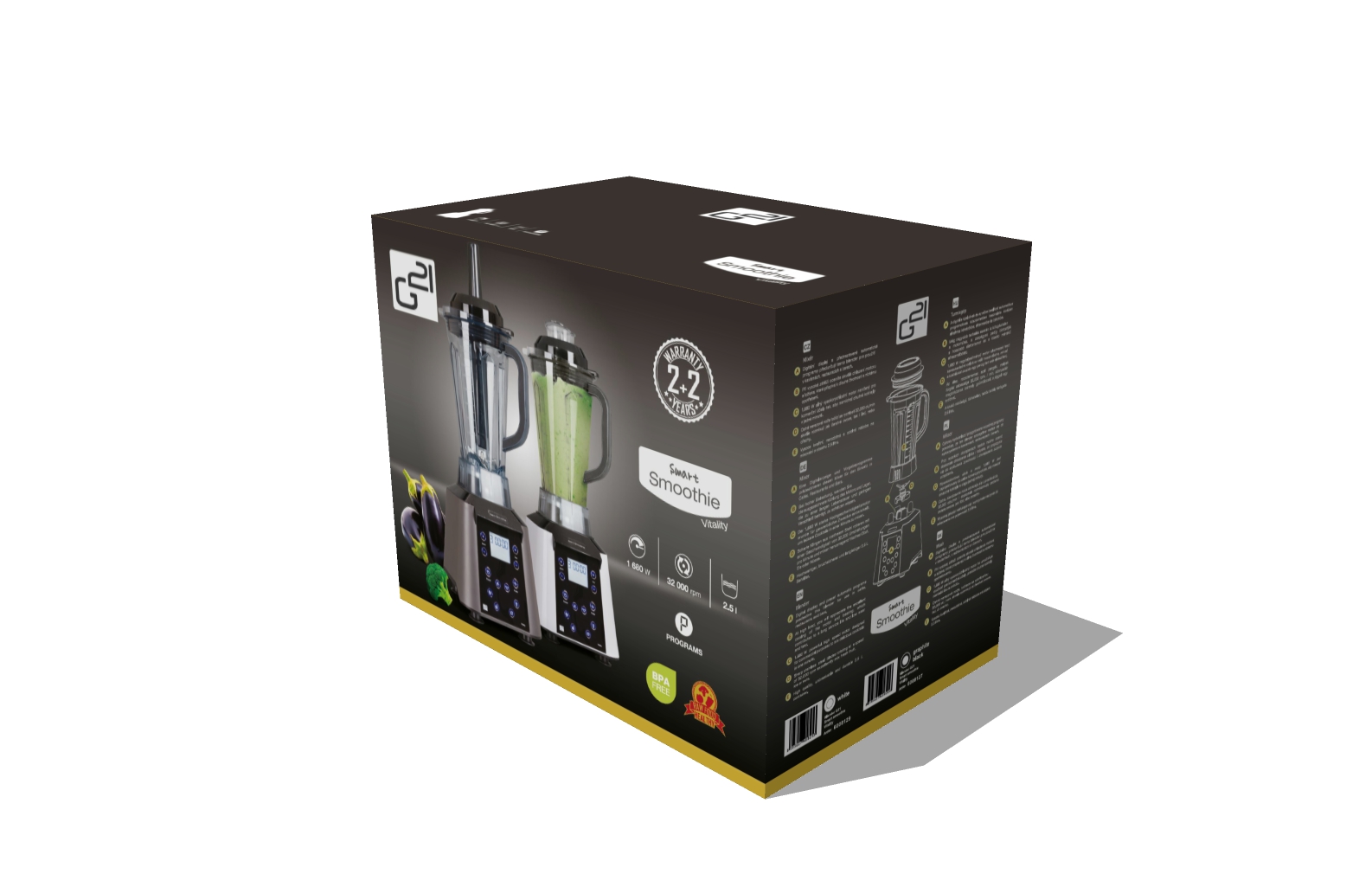 Vybíráte nové přístroje podle parametrů? Pak je blender G21 Smart Smoothie Vitality jasným vítězem. 1 680 W a 32 000 otáček za minutu vysvětlují, proč je nejen v domácnostech, ale i v restauracích a barech, tak oblíbený. Nic jej nezastaví, nic jej nezpomalí.