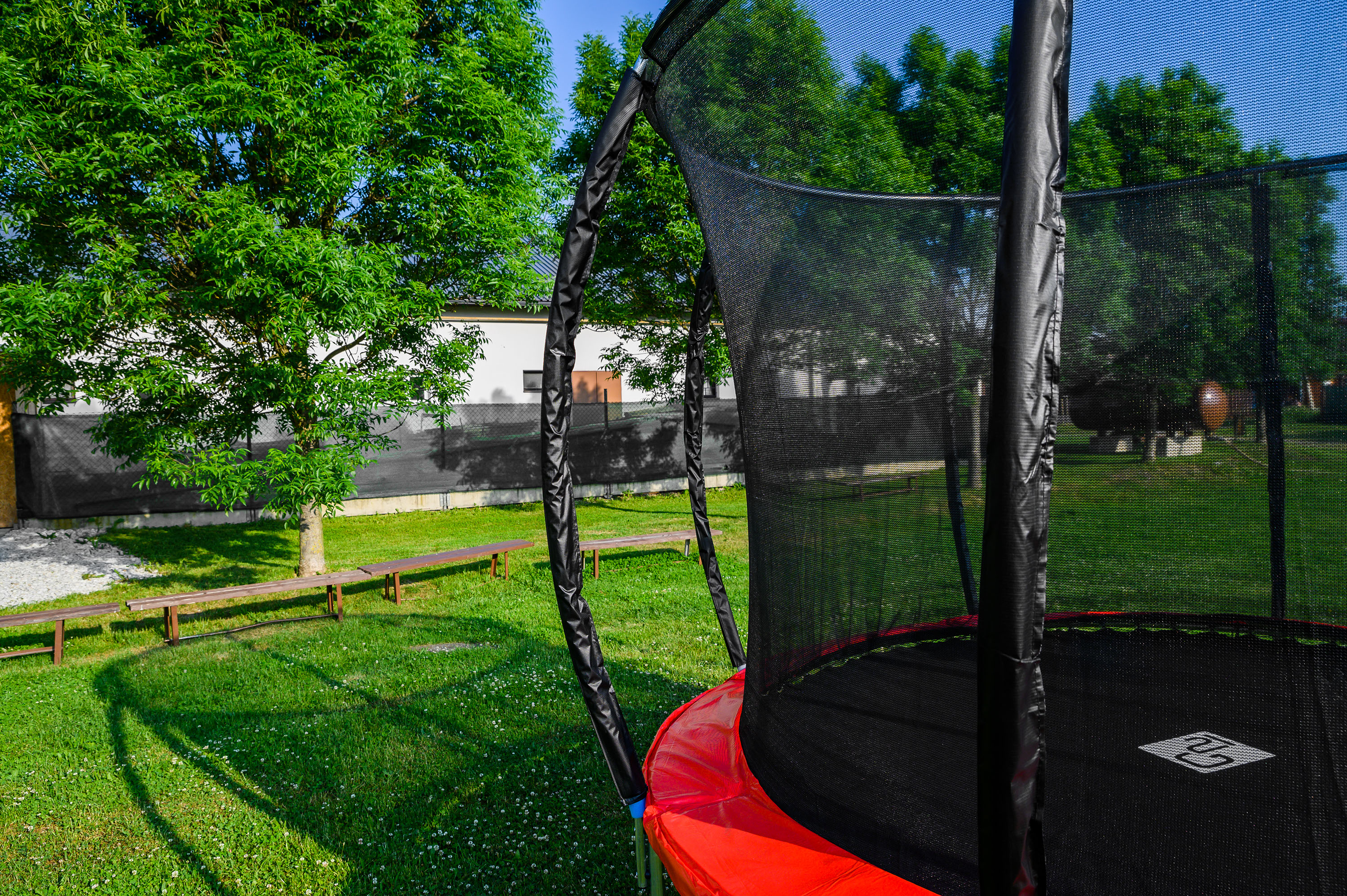 Velkou pozornost jsme věnovali i spolehlivému zakrytí pružin trampolíny pro minimalizaci rizika poranění při skákání na trampolíně. Kryt pružin je z odolného nepromokavého materiálu s měkkou výplní. Kryty bočních sloupků trampolíny jsou také obaleny měkkou pěnou v nepromokavém pouzdře.