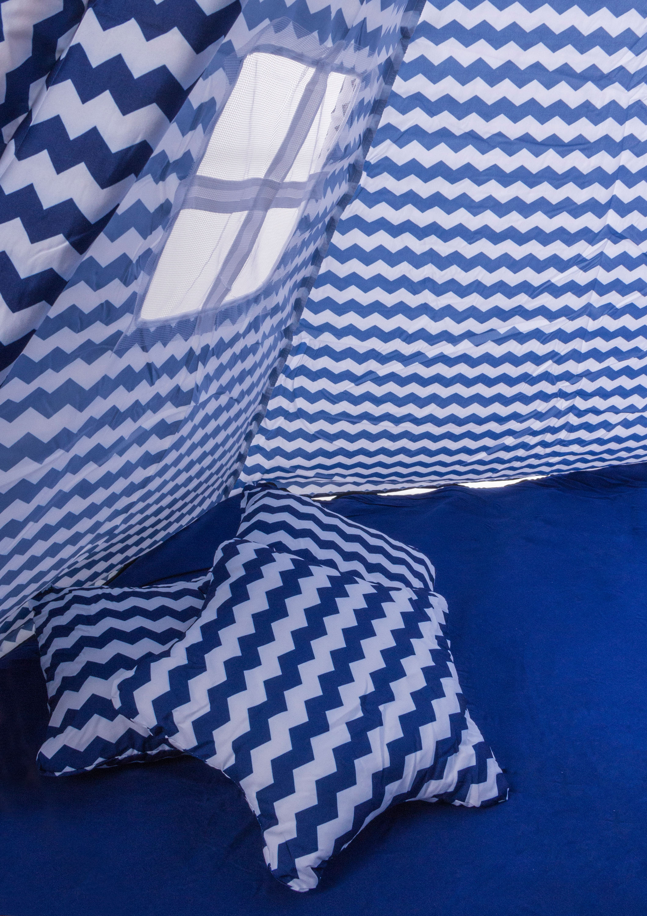 Ani na ten jsme samozřejmě nezapomněli! Nejen že je součástí teepee rovnou i podlážka, což není běžně zvykem, ale navíc dostanete k teepee i vybavení v podobě třech polštářků. Na ty si mohou děti buď sednout, nebo na ně složit hlavu při odpoledním odpočinku. Na jedné stěně teepee je umístěno okénko.