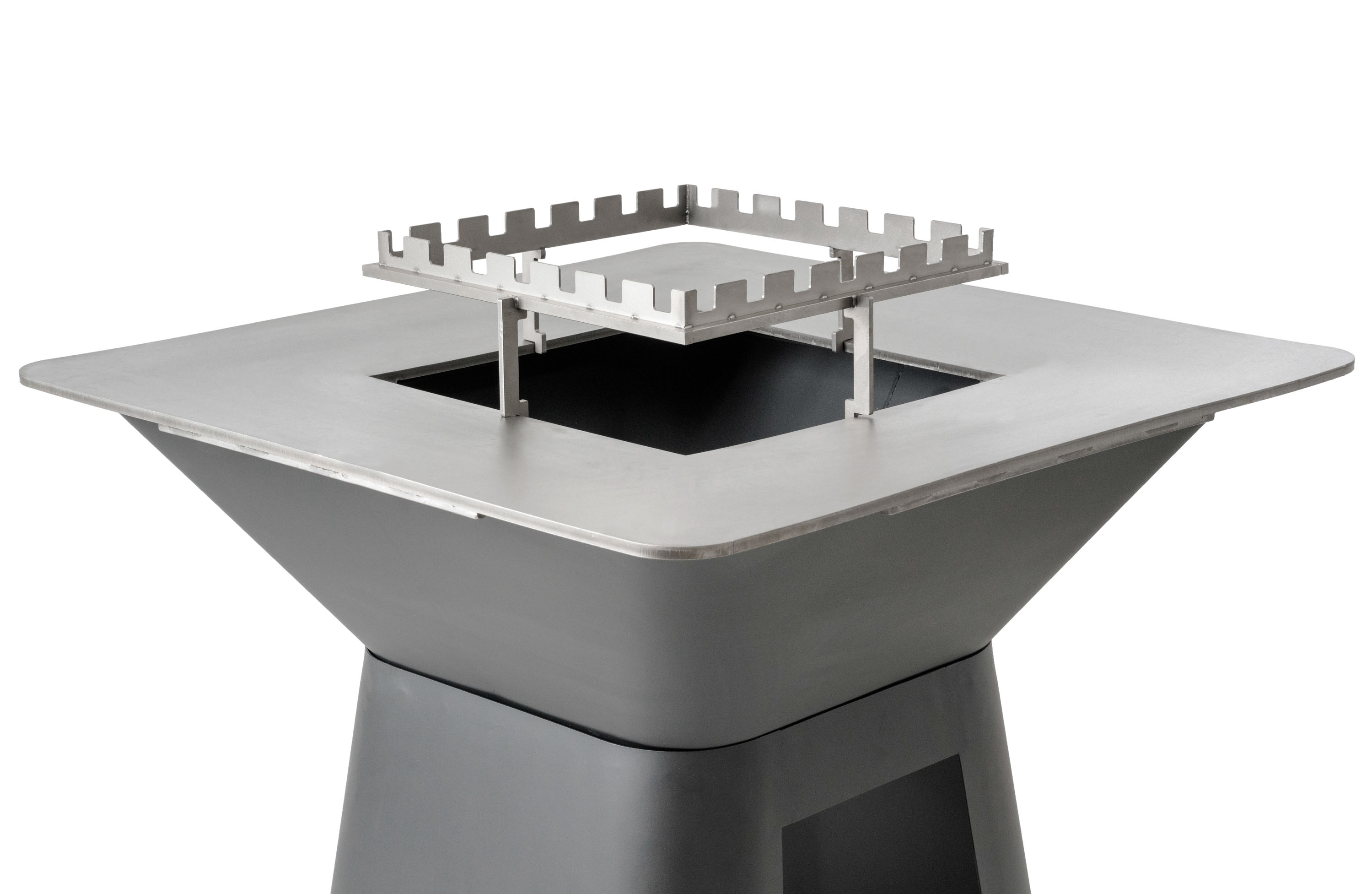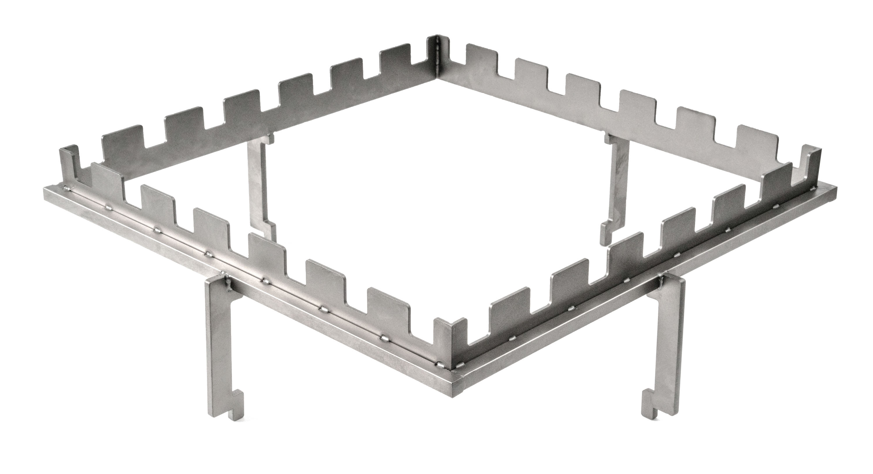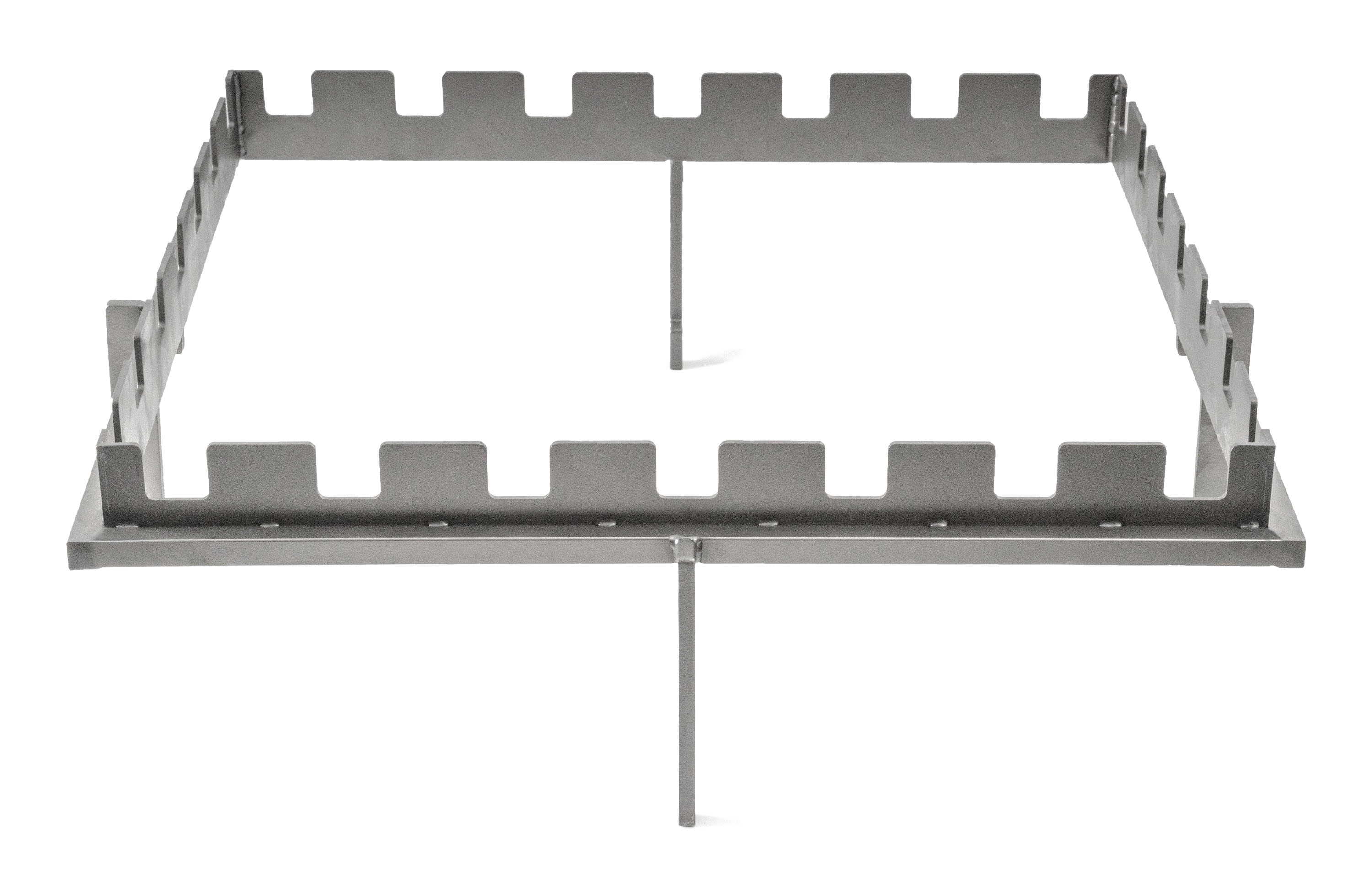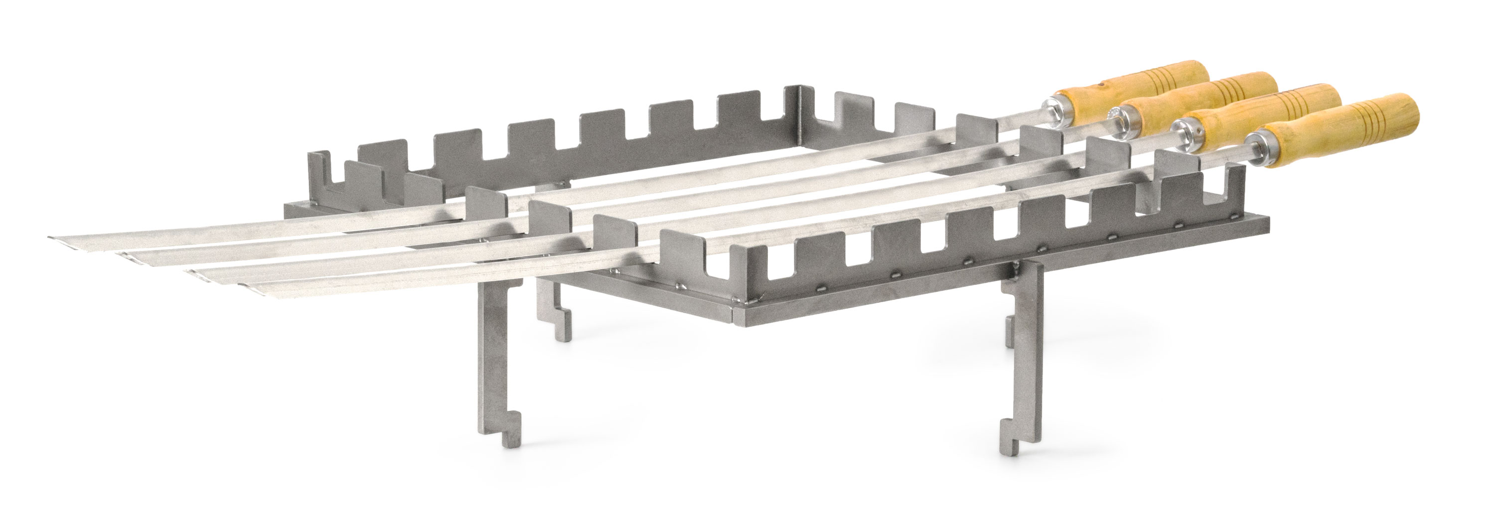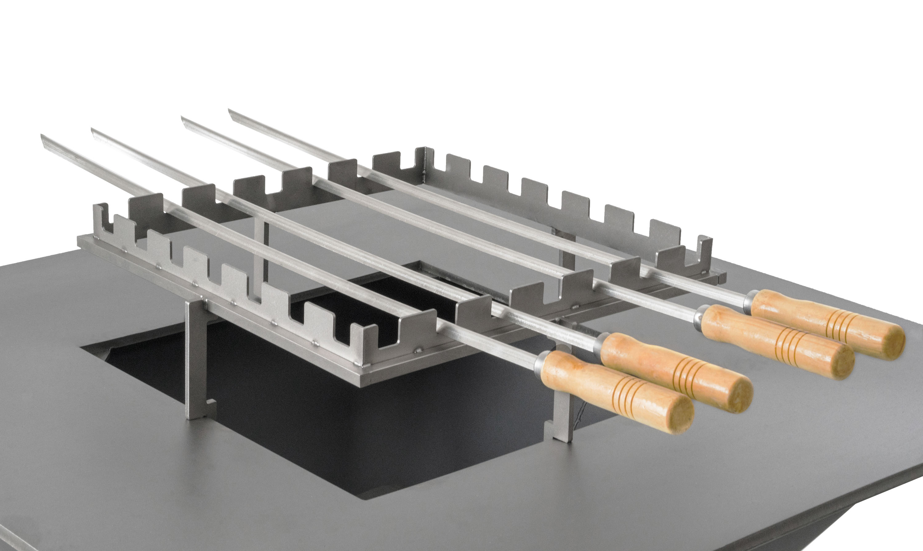 Doplněk pro grily na dřevo – stojan z nerezové oceli pro 5 špízů, rozměr 40 x 40 cm, výška nad topeništěm 14,5 cm.