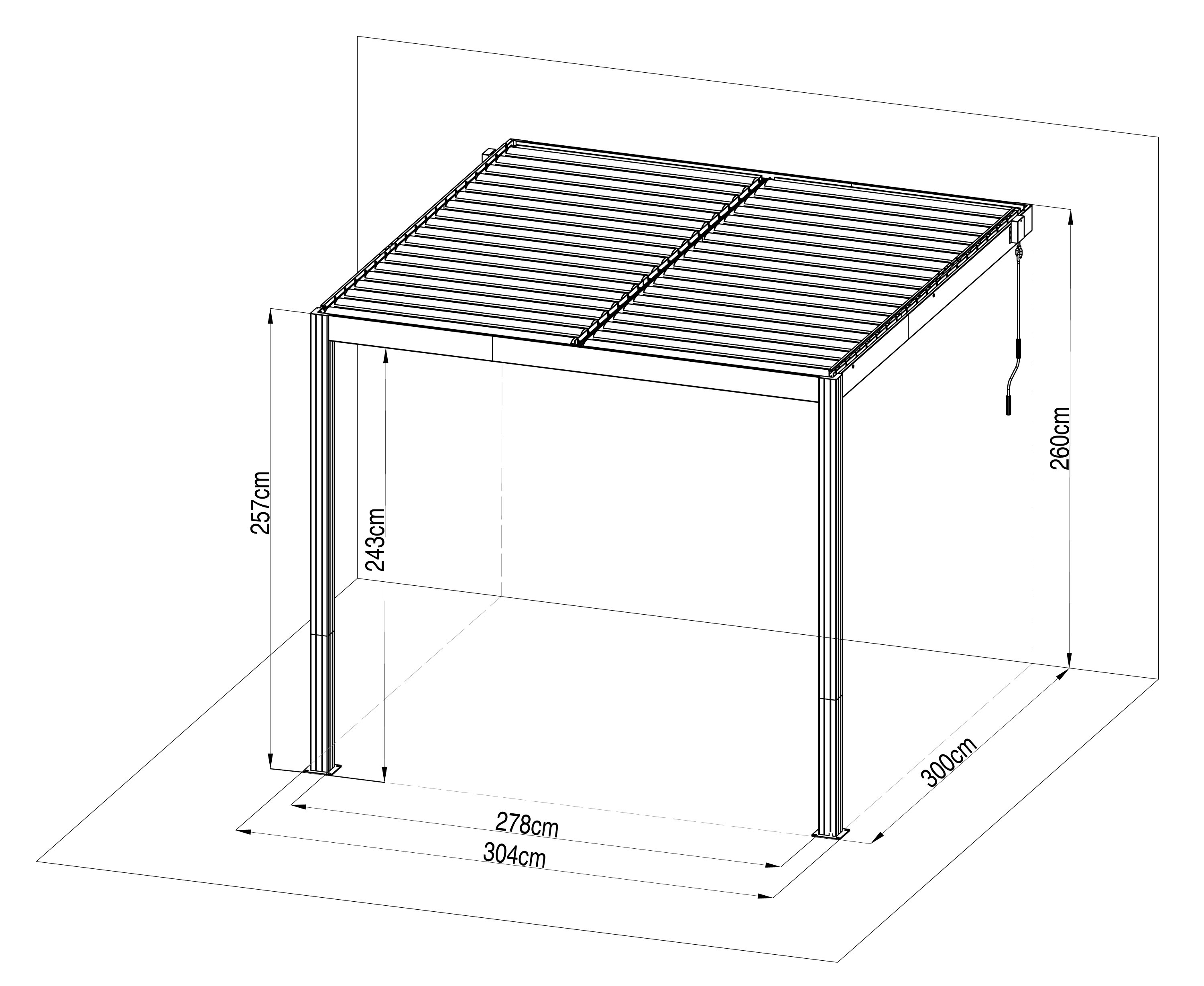 Boční stěna s otočnými pozinkovanými lamelami pro větší soukromí i ochranu před větrem,deštěm či sluncem. Stabilní konstrukce z kvalitního hliníku, snadná instalace.