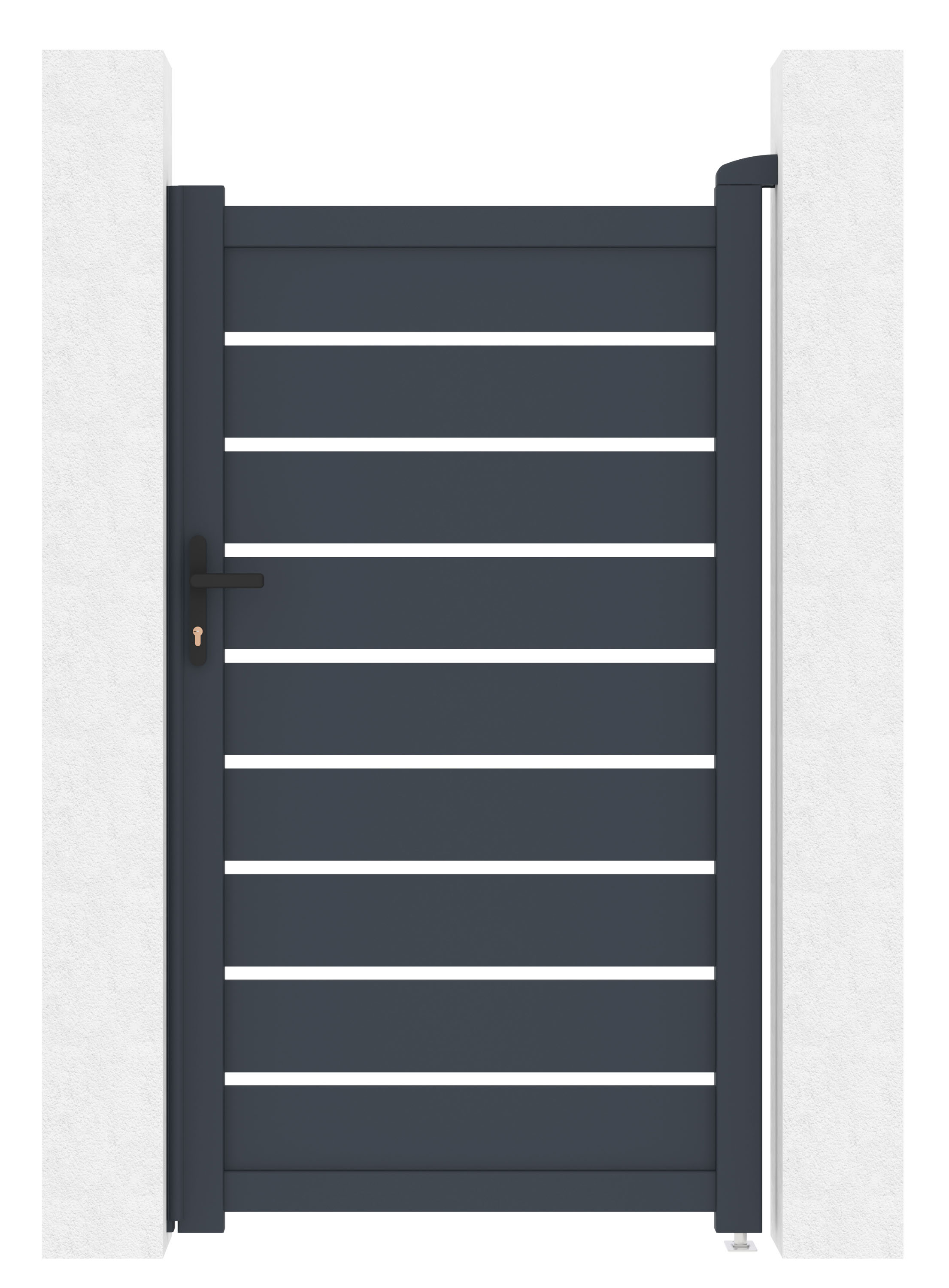 Výplň s horizontálně uloženými lamelami v atraktivním grafitovém provedení kombinuje dostatek soukromí s moderním designem, takže branka s otevíráním dovnitř bude slušet každému typu oplocené stavby.