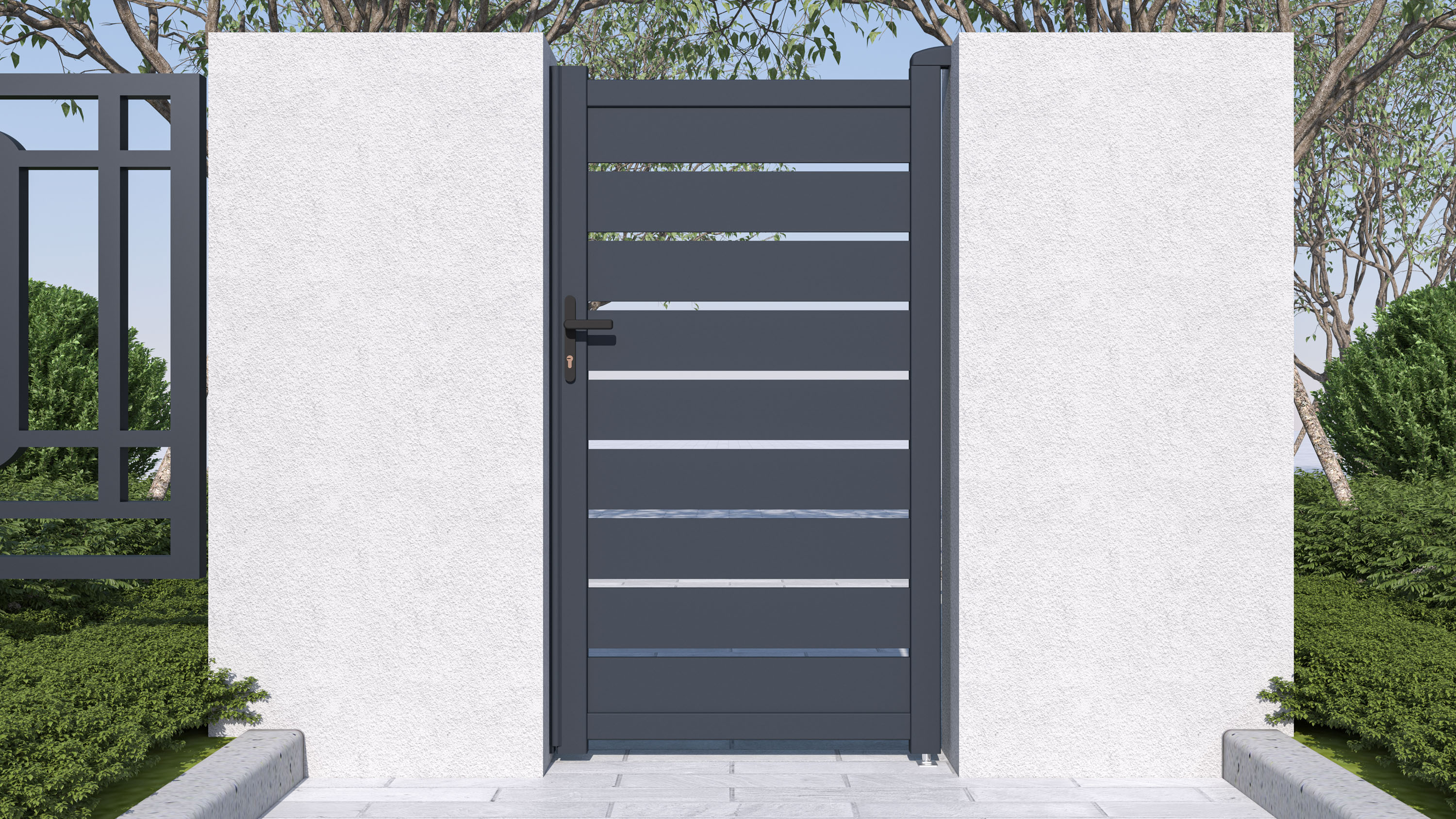 Plotová branka je klíčovou součástí oplocení nemovitosti nebo pozemku. 176 cm vysoká hliníková branka Reno má díky práškovému nástřiku ještě delší životnost, je odolná, atraktivní a její šířku můžete i přizpůsobit stávajícímu oplocení. Otevírání na kliku a zámek s FAB vložkou.