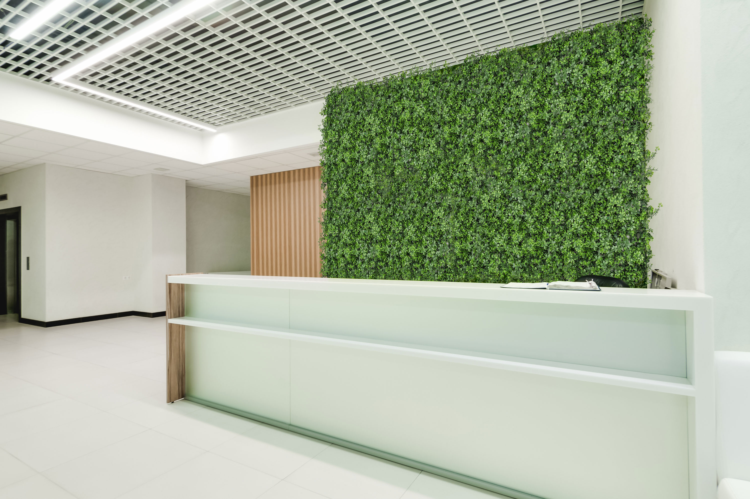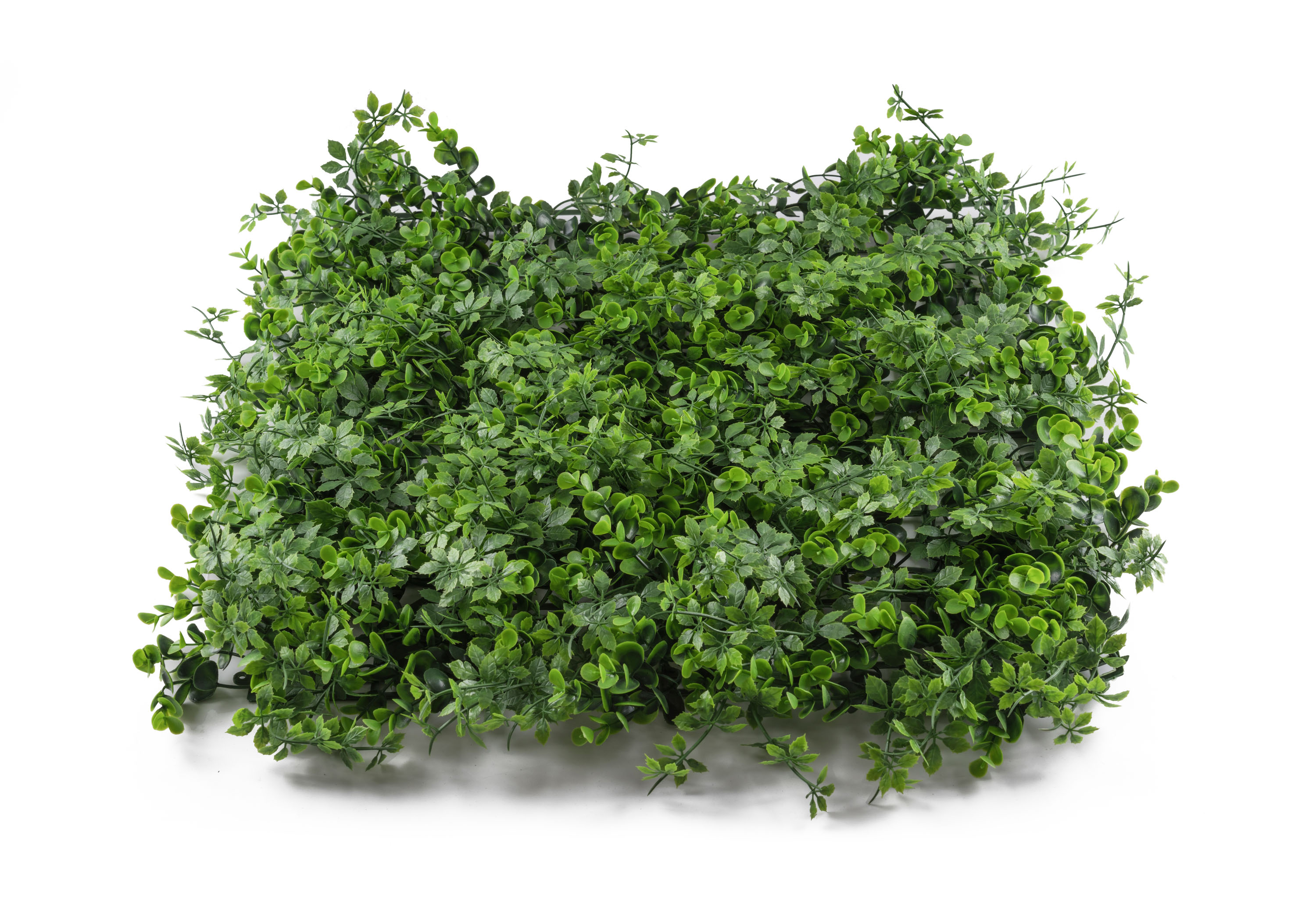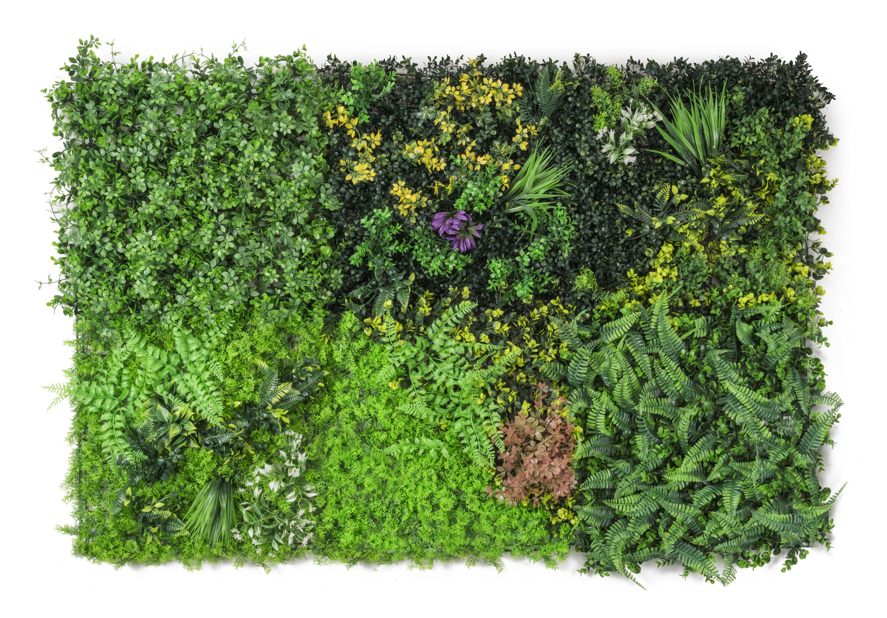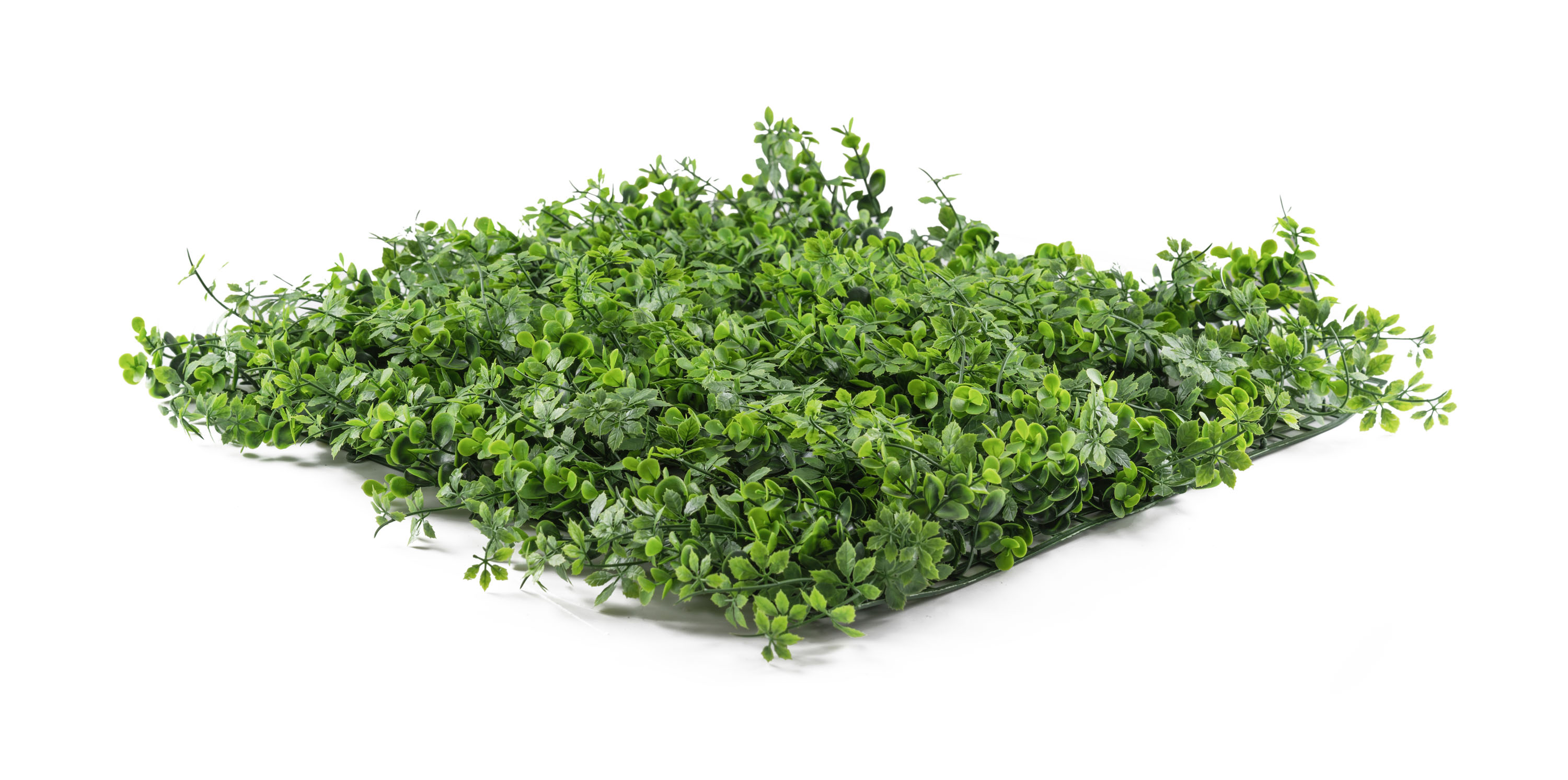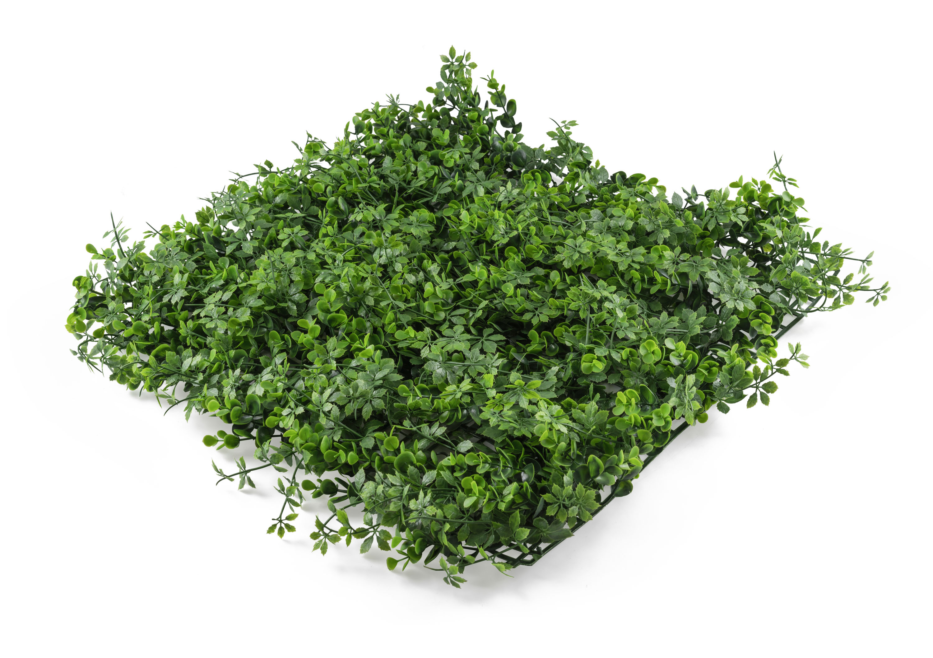 Umělá zelená stěna G21 přináší luxusní 3D efekt a realistický vzhled živé zeleně s nulovými nároky na údržbu. Rozměr panelu je 50x50 cm, panely lze libovolně kombinovat. UV ochrana zajistí,že je lze použít v interiéru i exteriéru.