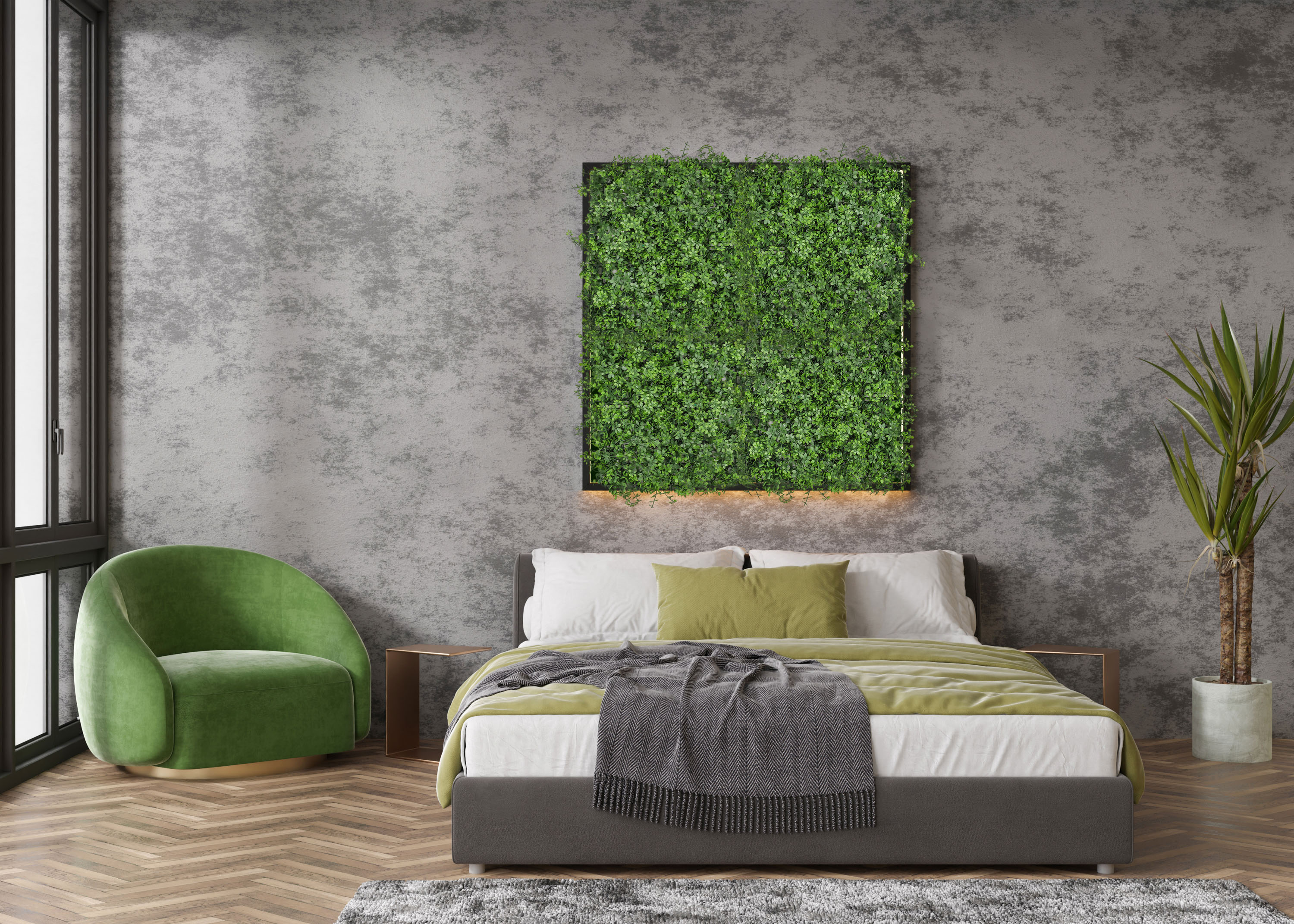 Jeden panel, spousta možností. Použijte jej jako zajímavý interiérový doplněk, vytvořte zelenou stěnu v obýváku, přírodní zákoutí na balkoně, nebo zakryjte starý plot. Panely o rozměrech 50 x 50 cm snadno zkombinujete do větších celků díky modulovému systému rastrů a příchytek na zadní straně každého panelu. Zvládnete to bez vrtání a nářadí, stačí zip páska nebo obyčejné háčky. Ať už panely připevníte na betonovou zeď, dřevěné obložení nebo sádrokarton, výsledek bude vždy perfektní. A co když potřebujete menší rozměr? Pak panel jednoduše zastřihnete a natvarujete podle potřeby.