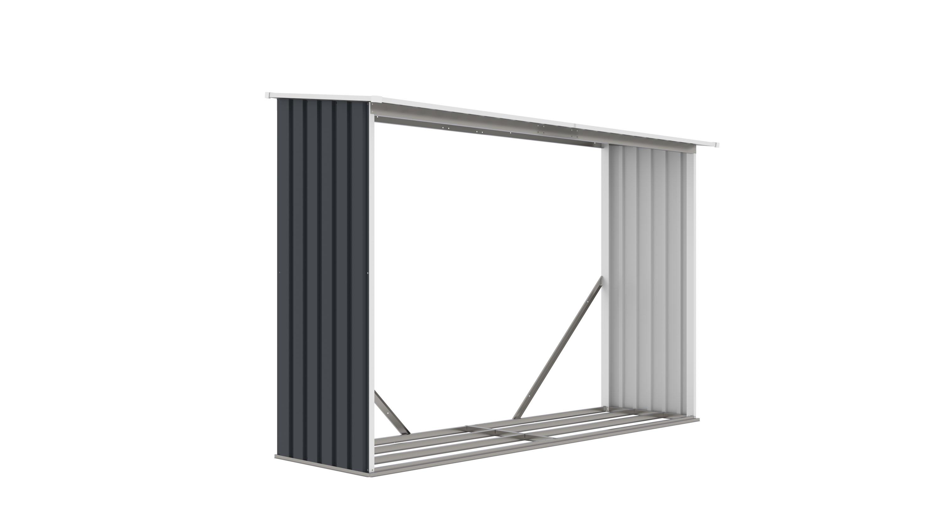 Přístřešek na dřevo HEX 53 je stabilním, bezúdržbovým a estetickým řešením pro uskladnění dřeva u rodinného domu, chaty nebo zahradního domku.