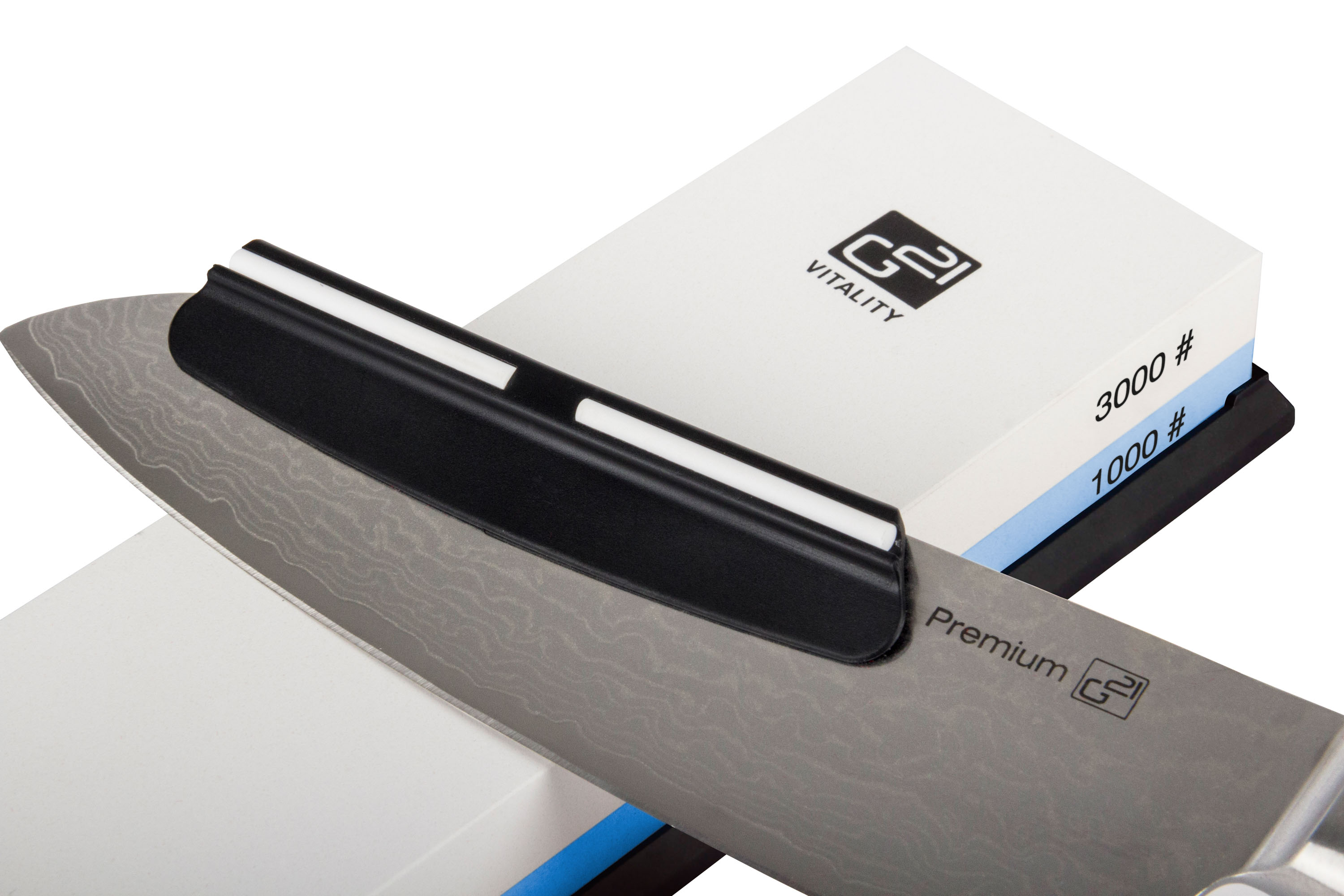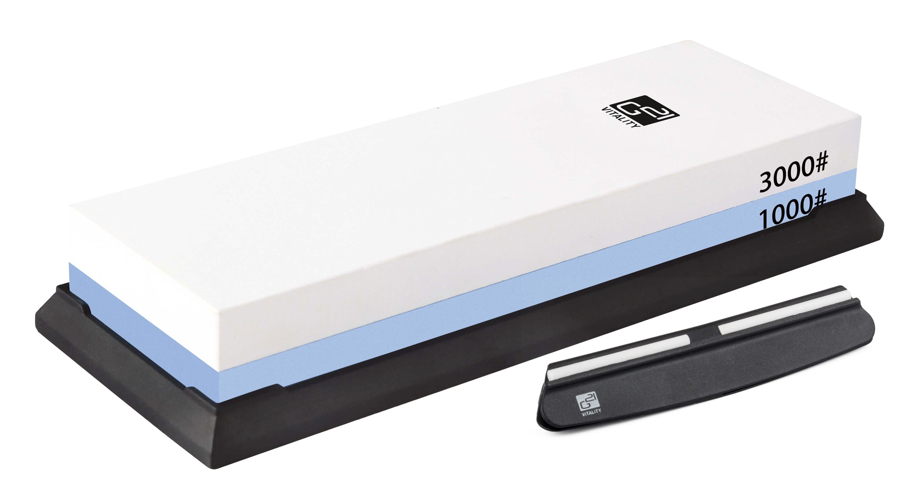 Vysoce kvalitní korundový oboustranný brousek s tvrdostí 1000 a 3000 pro dokonalé broušení nožů. Brusný kámen je v silikonovém bloku, v balení je i vodítko pro přesný úhel.