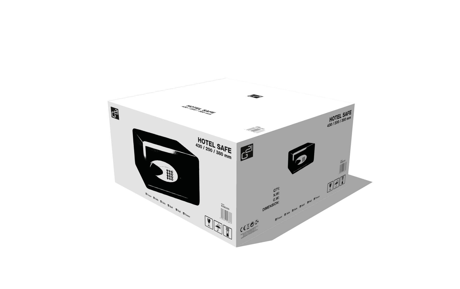 Hotelový trezor G21 spolehlivě ochrání vaše cennosti. Je vyroben z pevného plechu tloušťky 2 mm. Digitální zámek s LED displejem, nastavení data a času, zpětná kontrola až 105 vstupů, nouzový mechanický zámek s dvěma klíči, otvory pro ukotvení.