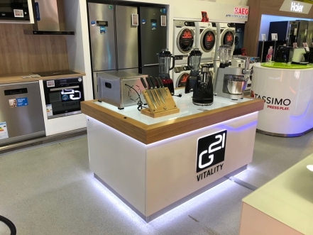 Vyzkoušejte si pohodlné otvírání a výměnu plat v sušičkách G21 Vitality, podívejte se na příjemné odstíny a poslechněte si zvuk stolních mixérů nebo si podle držení rukojetí vyberte nože, které vám nejlépe sednou do ruky. Obdivovat zde můžete i oblíbeného kuchyňského robota G21 Promesso s jeho bohatým příslušenstvím.