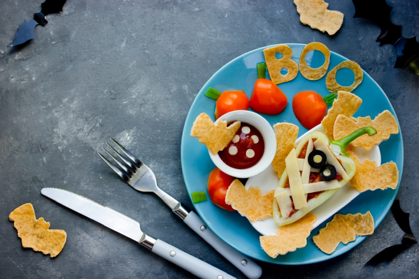 Halloweenské tortilla chipsy s rajčatovou salsou