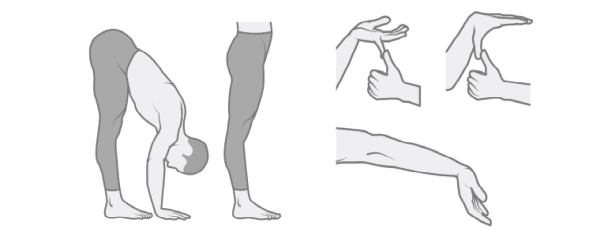 - Stoupněte si s nohama u sebe a předkloňte se. Dotknete se hladce a napoprvé podlahy celými dlaněmi?
