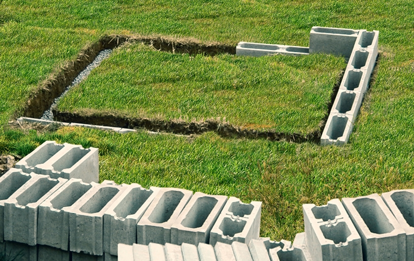 Začněte pokládat betonové tvárnice ztraceného bednění do výkopu. Ujistěte se, že jsou tvárnice rovně a pevně usazeny. Použijte vodováhu k dosažení správné roviny.