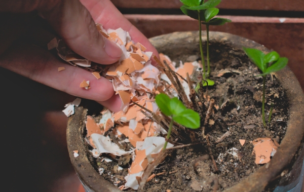 Nahrubo rozdrcené skořápky nasypte kolem rostlin, které chcete ochránit před slimáky a dalšími škůdci.