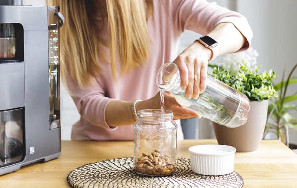 TIP: Pokud máte mixér G21 Comfort, poměr mandlí a vody řešit nemusíte. Mixér se díky programu na přípravu rostlinného mléka o všechno postará sám. Sám dodá potřebné množství vody, sám připraví mléko a sám se i umyje.