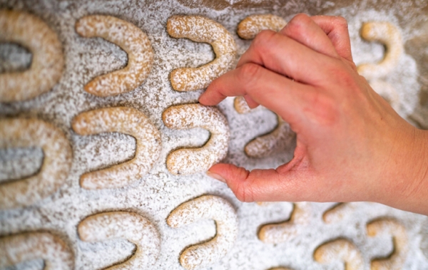 K tradičním zvykům o Vánocích patří pečení vánočky, která má být na Štědrý den bohatě zdobena mandlemi a uvnitř rozinkami.